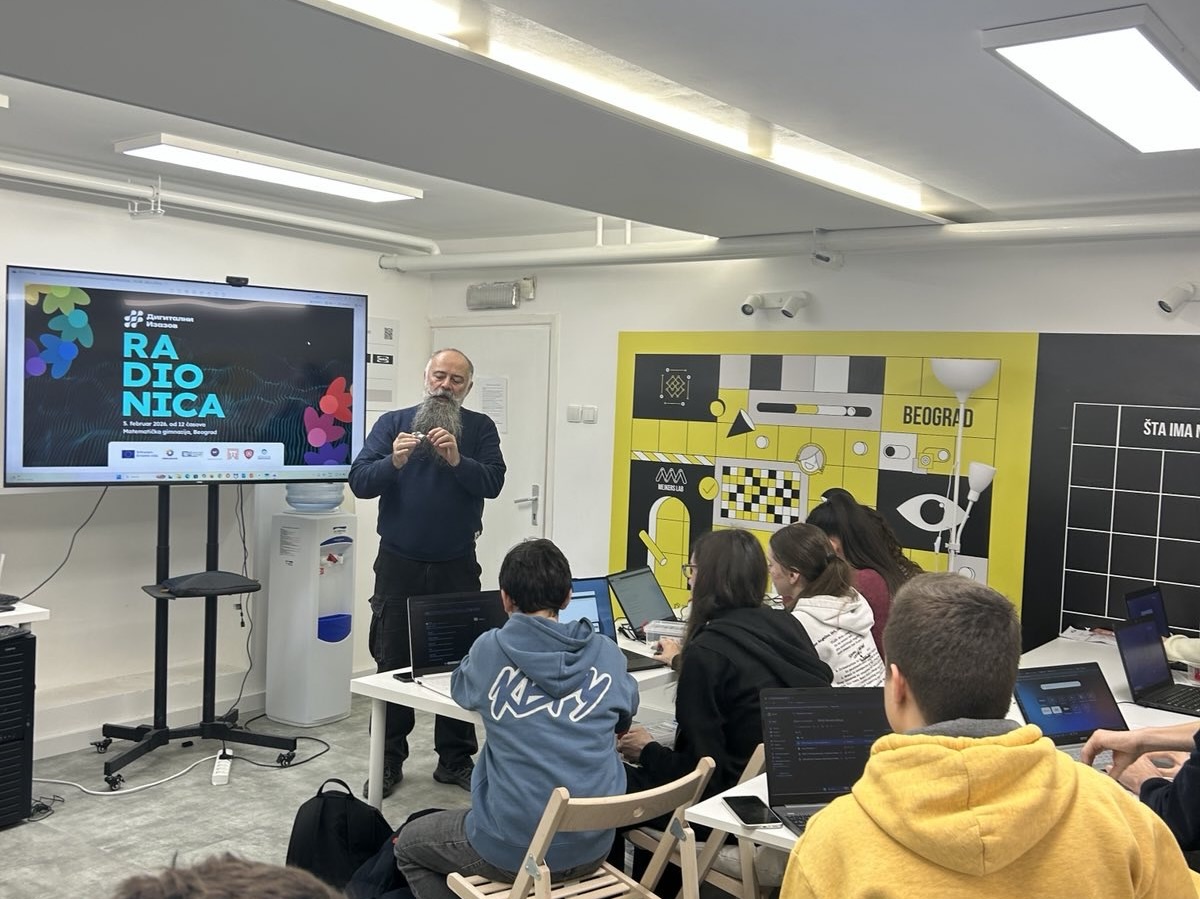 У оквиру пројекта „Дигитални изазов“, заједно са ученицима из Темишвара, наши ученици учествовали су у низу радионица посвећених микроконтролерима и њиховој практичној примени. Предавачи из Румуније, као и представници Регионалног центра за таленте „Михајло Пупин“, ЕТШ „Никола Тесла“ (Панчево), организације Циркулирање и Математичке гимназије, ученицима су приближили рад са Ардуино платформом, примену различитих сензора и микроконтролера, као и визуелизацију података.