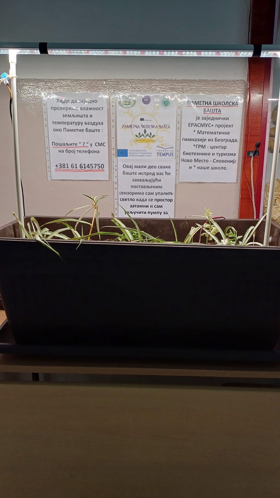 Они су, по претходном договору, испоручили и поставили Паметну школску башту у холу школе и дому ученика. Презентовали су и сам принцип рада баште, која користи сензоре за влагу и светлост, као и систем за комуникацију са корисником.