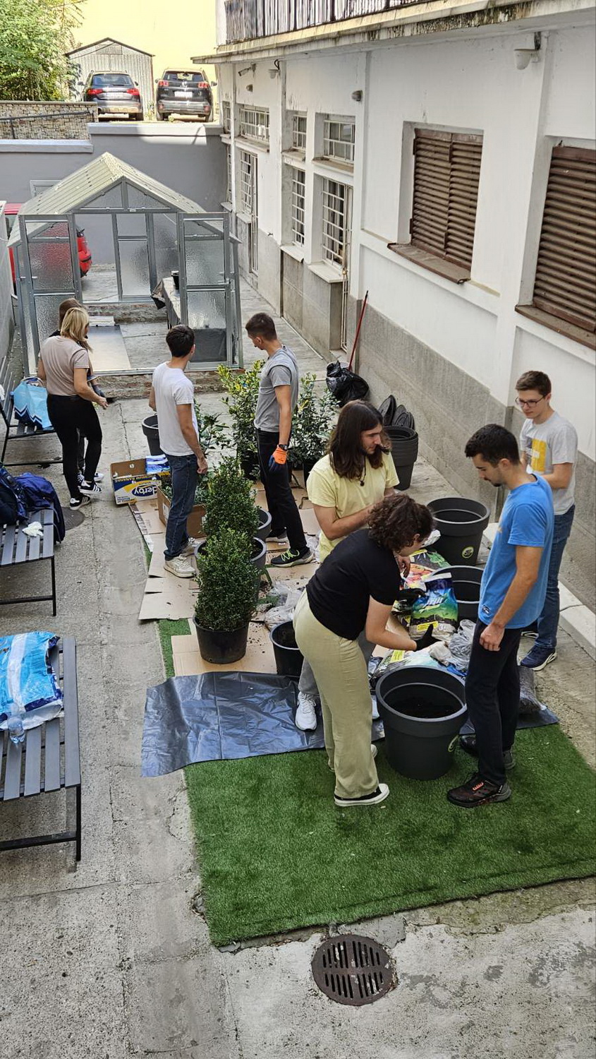 Данас је у оквиру пројекта „Паметна школска башта" реализована нова акција. У школу су стигле саднице различитих биљака, укључујући и украсно цвеће, саксије, као и сва потребна опрема. Ученици чланови Секције одрживог развоја, заједно са професорима, искористили су прилику да пресаде биљке и распореде их у башту и стакленик. Ова активност имала је поред практичног и забавног, и едукативни карактер, јер су ученици учили о различитим врстама биљака, правилном пресађивању и одржавању баште, али и развијали свест о еколошки одрживом баштованству. У току је прављење паметних алата који ће омогућити да се дигитализује праћење стања школске баште.