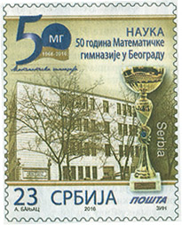 Велики јубилеј, педесетогодишњицу Математичке гимназије обележила је и "ПОШТА Србије" пригодном поштанском марком у оквиру издања "Наука". Аутор ликовног решења је Анамари Бањац, а марка има номиналу од 23 динара. Израђена је у Заводу за израду новчаница и кованог новца у техници вишебојног офсета. Уз марку је објављен и пригодни коверат.