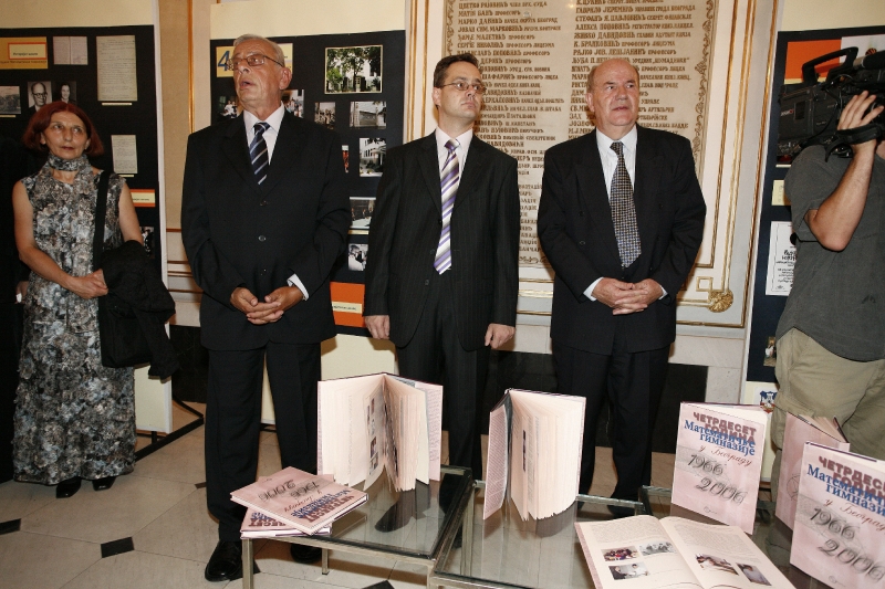 ОпштеДОГАЂАЈИ-фотографијеУ уторак, 19. септембра 2006. године Математичка гимназија је обелжила 40 година успешног рада. Свечана прослава одржала се у Народном позоришту. Прослави је присуствовало око 500 угледних гостију. Велику част нам је указао др Војислав Коштуница, председник Владе Републике Србије, прихвативши да буде високи покровитељ овог јубилеја. Свечаној академији присуствовао је и министар просвете и спорта г. Слободан Вуксановић, градоначелник Београда г. Ненад Богдановић, градски секретар за образовање г. Владимир Тодић, председник општине Стари град госпођа Мирјана Божидаревић и други многобројни и драги нам гости.