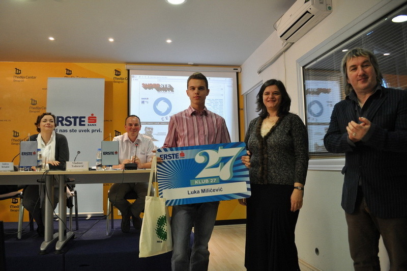 ОпштеУ оквиру пројекта "Клуб 27", који Ерсте банка реализује трећу годину за редом, са циљем да афирмише талентоване младе људе и помогне им да добију заслужено јавно признање за свој рад и резултате, проглашени су овогодишњи добитници награда. У категорији природних наука победио је ЛУКА МИЛИЋЕВИЋ, ученик 4.д разреда Математичке гимназије.