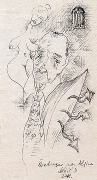 Поводом обележавања Дана школе, галерија Кулоар је припремила изложбу цртежа Драгана Нешића из циклуса Шредингер на Алпима.