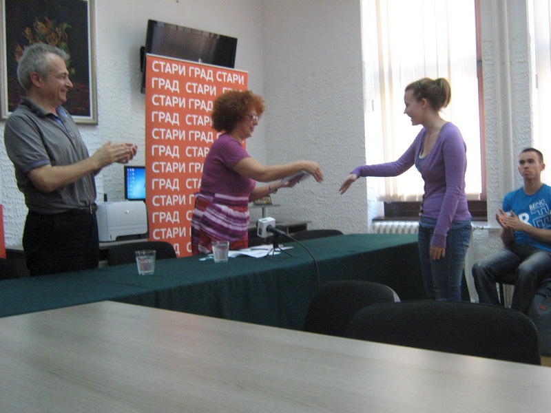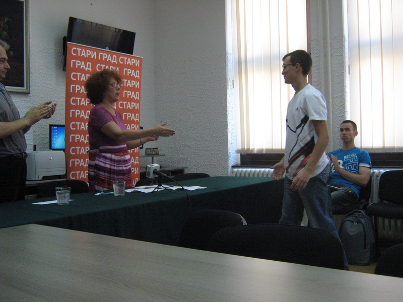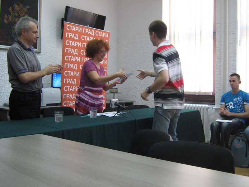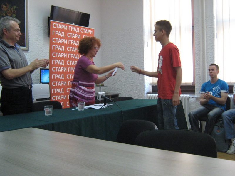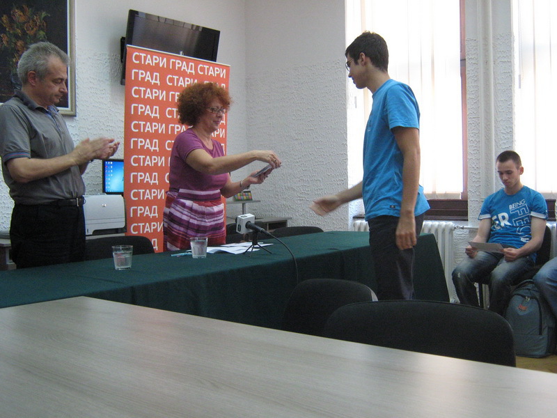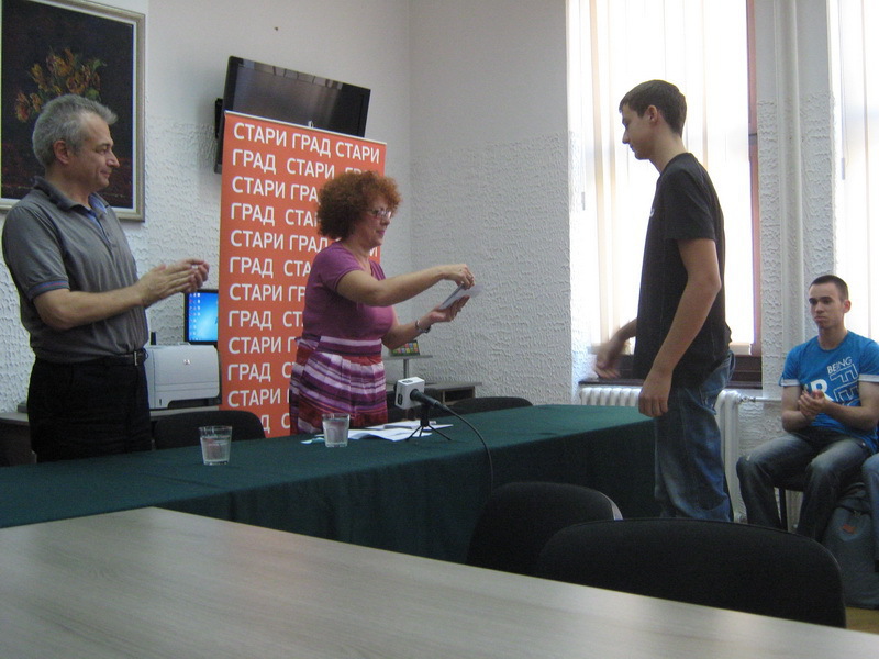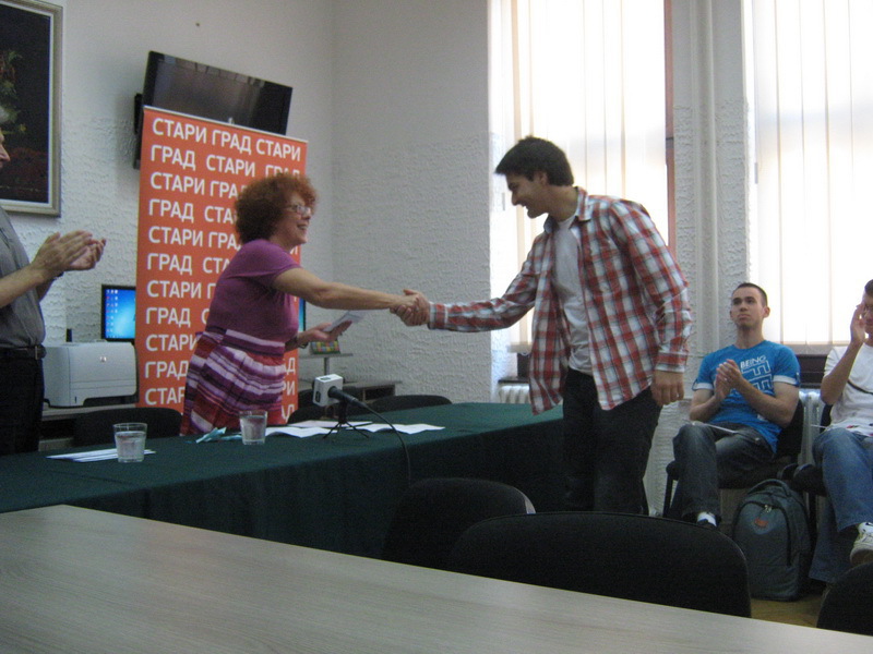 ОпштеДОГАЂАЈИ-фотографијеУ четвртак, 22. септембра 2011. године, Математичку гимназију посетила је председница општине Стари град Мирјана Божидаревић. Овом приликом, председница општине је уручила новчане награде ученицима који су освојили медаље на међународним олимпијадама и балканијадама из математике, физике, информатике и астрофизике. Награде су добили: Теодор фон Бург, Алекса Станковић, Стефан Анђелковић, Огњен Марковић, Филип Живановић, Стефан Баџа, Марко Кузмановић, Стефан Станојевић, Маријана Вујадиновић, Максим Стокић, Бранко Грбић, Раде Шпегар, Стеван Гајовић и Игор Спасојевић. Директор Математичке гимназије мр Срђан Огњановић захвалио се општини Стари град која увек има разумевање за наше младе таленте.