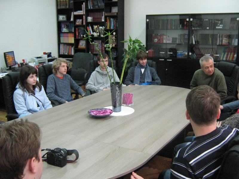 ОпштеДОГАЂАЈИ-фотографијеМеђународна сарадњаУ петак, 30. марта 2012. године, Математичку гимназију посетили су ученици и професори (пет ученика и четири професора) Московске гимназије "Колмогоров" по чијем узору је и основана Математичка гимназија. Ови ученици из Москве ће учествовати на Српској математичкој олимпијади као гостујућа екипа и то је резултат дугогодишње сарадње наше школе са Московском гимназијом.