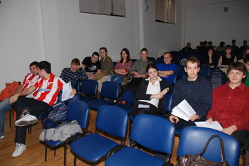 ОпштеТАКМИЧЕЊА У ЗЕМЉИ-фотографијеМатематичка гимназија, МГ часопис и Ђачки парламент организовали су такмичење ученика у говорништву које се одржало у уторак, 27. новембра, у свечаној сали Математичке гимназије. Право учешћа имали су сви ученици, а тема је била слободна. На такмичењу представило се дванаест ученика, од којих је победу однео Милош Арсић, ученик IVб одељења Математичке гимназије, као најуверљивији и најквалитетнији беседник, а говорио је о насиљу међу децом и над њима. Друго место заузео је ученик IIIб, Предраг Обрадовић, чија је беседа носила наслов „На раскрсници“, скрећући пажњу на снажан утицај који имају стране речи и узречице у свакодневном говору, а за њим, на трећем месту, налази се Катарина Лукић из IVд, са слободом и одговорношћу при изговарању јавне речи. Такође, веома запажен био је ученик IVб, Михаило Рајачић, са врло занимљивом темом „Опрости нам дугове наше“, где је успео да досетљивим и аргументованим излагањем представи садашњу ситуацију фудбалског тима Црвена Звезда свима, чак и онима који фудбал не прате. Међу свим ученицима III и IV године Математичке гимназије нашла се и најхрабрија учесница, Марина Ивановић, ученица Iа, скренувши нам пажњу на растући проблем коцкања међу малолетницима и омладином.