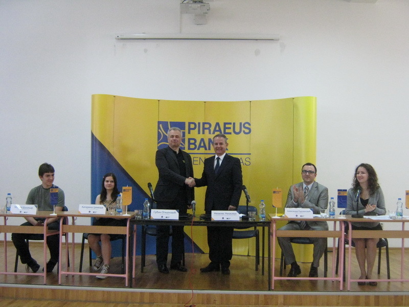 ОпштеУ понедељак, 10. јуна 2013. године Математичка гимназија је потписала Уговор о сарадњи са Пираеус банком која ће бити генерални покровитељ Првог Купа Математичке гимназије. „Изузетно нам је драго да је једна банка као што је Пираeус банка препознала велики потенцијал Математичке гимназије и прихватила да буде генерални покровитељ овог значајног међународног Купа. Жеља нам је да ту сарадњу дефинишемо и наставимо у наредним годинама“ – изјавио je Срђан Огњановић, директор Математичке гимназије у Београду. Приликом потписивања Уговора о спонзорству, г-дин Неоклис Неоклеус изјавио је да веома срећан што ће Пираеус банка потписивањем овог ексклузивног спонзорског уговора са Математичком гимназијом из Београда, подржати паметне и талентоване младе људе који ће Србију представљати широм света на најбољи начин, освајајући највредније награде и признања, наглашавајући да је поносан на овакве пројекте и њихов допринос могућем заустављању одлива „мозгова”, надајући се да ће ови будући успешни пословни људи и научници, препознати своју будућност у Србији.