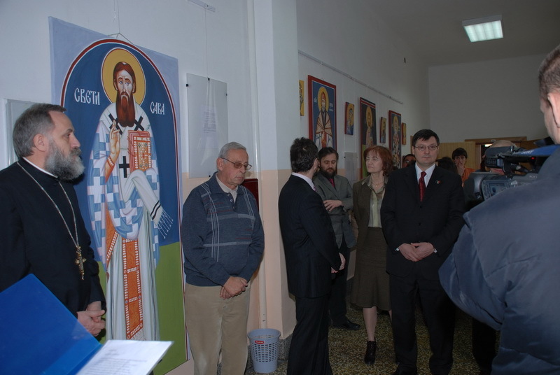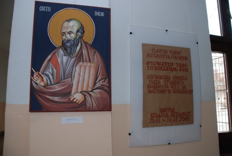 Ово је већ пета традиционална изложба студентских живопиачких радова о Савиндану у МГ. Сарадња двеју школа ће бити настављена и у наредним годинама, на корист Цркве и државе и будућих генерација српских математичара и живописаца. Иако је у уводној беседи профофесор фрескописа мр Горан Јанићијевић, аутор и организатор изложбе, говорио о три јубилеја које су Српска Православна Црква и српска држава прославили у претходној години и о споју наизглед неспојивог - математике и уметности који само може да обједини личност Светог Саве као његов залог за будућност. Епископ Јован је истакао значај сарадње двеју школа, али и везу између науке и Цркве и уметности, што је био најлепши увод у духовну гозбу која је била пред очима јавности у Математичкој гимназији. Упутивши поздраве и благослов Патријарха српског г. Иринеја, епископ Јован је изложбу отворио, а домаћинима пожелео свако добро од Светог Саве пред Господом.