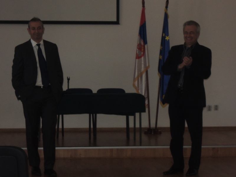 ОпштеДОГАЂАЈИ-фотографијеМеђународна сарадњаУ четвртак, 13. фебрура 2014. године Математичку гимназију је посетио амбасадор Мајкл Девенпорт, шеф делегације Европске уније у Републици Србији. Нашим ученицима је одржао кратко предавање о процесу уласка Србије у ЕУ. Након тога је разговарао са шесторицом матураната који су ове године примљени на Универзитет у Кембриџу.