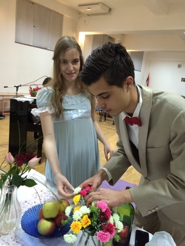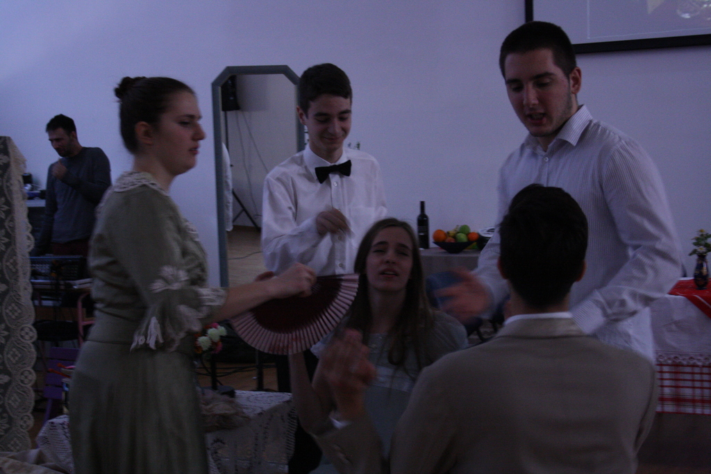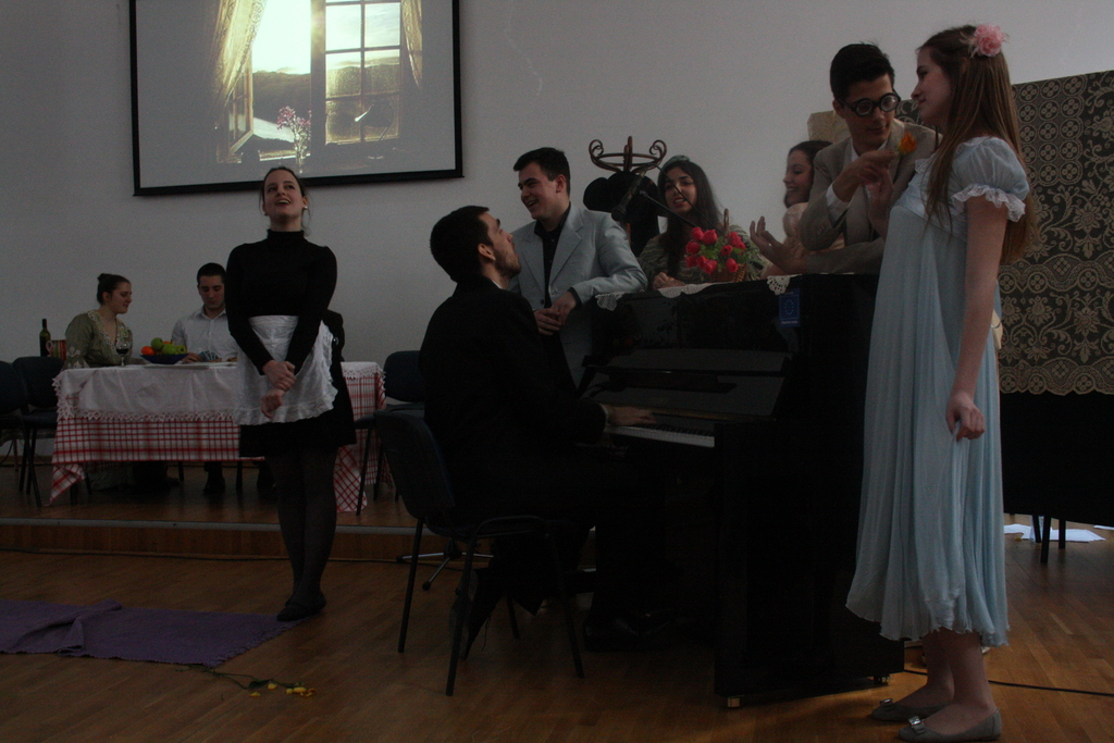 ОпштеДОГАЂАЈИ-фотографијеКомедија ”Избирачица”, Косте Трифковића, изведена је у Математичкој гимназији, 19. и 26. фебруара 2015. године. Представу је припремала проф. Јелена Нововић са ученицима четвртог разреда. У представи су играли: Вилдана Бакаревић (Малчика), Марко Кадијевић (Тошица), Марко Војиновић (Штанцика), Марко Бабић (Бранко), Катарина Лалатовић (Савета), Ружица Цветановић (Милица), Милан Тунић (господин Соколовић), Ђурђа Козаичевска (госпођа Соколовић), Алекса Бркић (господин Тимић), Наталија Yasir (госпођа Тимић) и Павле Стипсић (Јован, послужитељ). У породичном дому Соколовића, слободно су се кретали, глумили, свирали, певали млади глумци у раскошним костимима који одражавају време о којем пише Коста Трифковић. Захваљујући доброј сарадњи са Народним позориштем у Београду, костими су и позајмљени од њих. Ђаци су, и овог пута, показали своју свестраност, таленат, истрајност и вољу. Потпуно су се саживели са својом улогом. Оставили су утисак као да већ имају глумачко искуство. Њихову сјајну глуму често је прекидао смех публике и аплауз. Публика, коју су чинили ђаци и професори наше школе, ђачки родитељи и пријатељи, имала је само речи хвале после изведене представе која је показала њихов труд, енергију, младост, ентузијазам. Треба имати у виду да су ђаци, и поред бројних школских и ваншколских обавеза, одвојили пуно времена за учење текста и за пробе. Зато су за сваку похвалу!!!