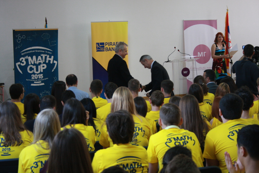 ОпштеУ уторак, 23. јуна 2015. године почео је Трећи Куп Математичке гимназије. Свечана церемонија отварања Купа одржана је у свечаној сали Математичке гимназије. Куп Математичке гимназије је међународно такмичење младих математичара, физичара и информатичара које ове године траје од 23. до 27. јуна. Двадесет екипа из тринаест земаља пријавило се за ово престижно такмичење. Министарство трговине, туризма и телекомуникација је покровитељ Купа Математичке гимназије, а већ трећу годину за редом, генерални спонзор је Пираеус банка АД Београд.