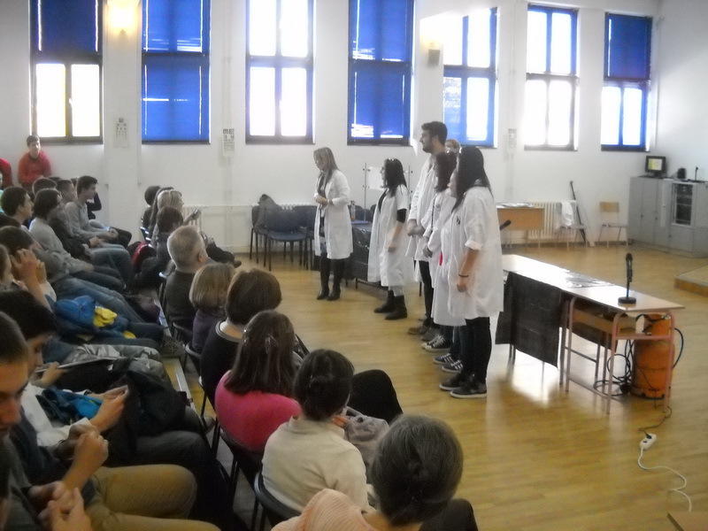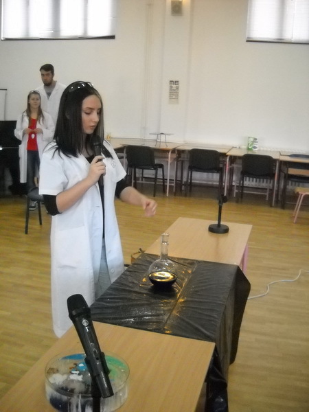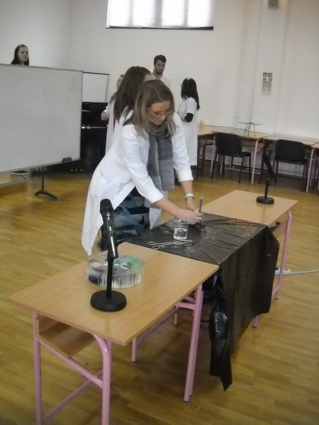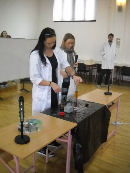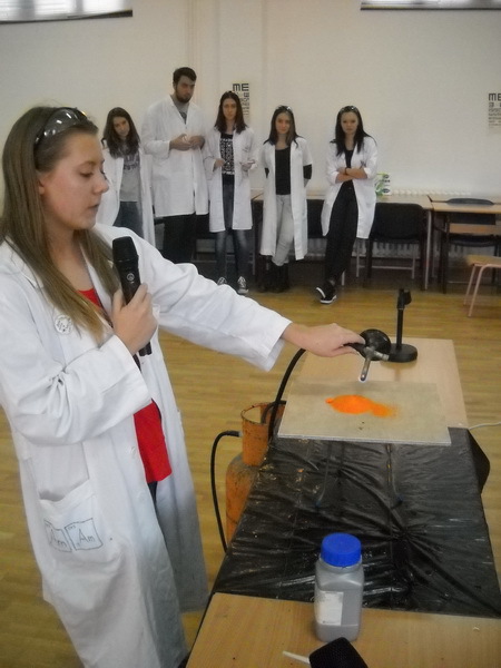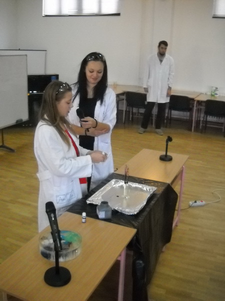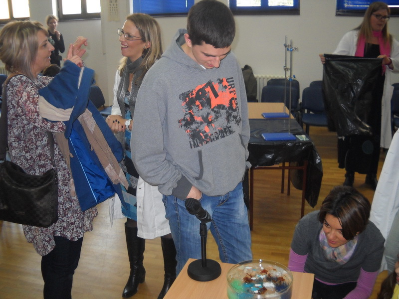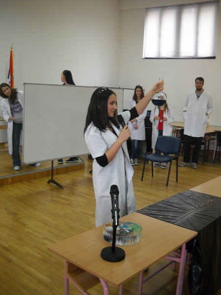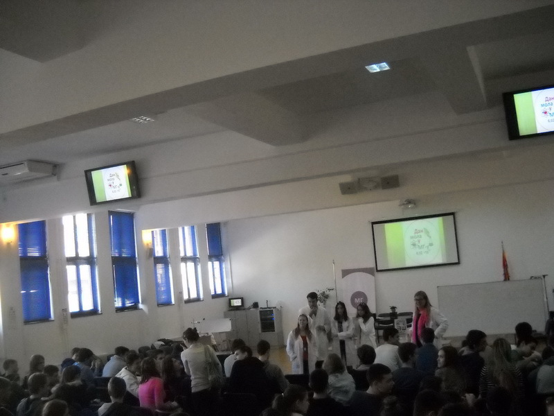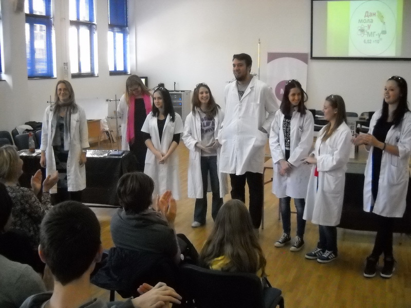 ОпштеДОГАЂАЈИ-фотографијеПоводом Међународног дана мола 23. октобра, обележен је Дан мола у Мг-у. Ученици наше школе су уз помоћ професорки Иване Вуковић и Анике Влајић демонстрирали занимљиве огледе у свечаној сали. Дељени су беџеви, као и "поруке у боци". Манифестацији су присуствовали ученици, колеге и гости из других школа.