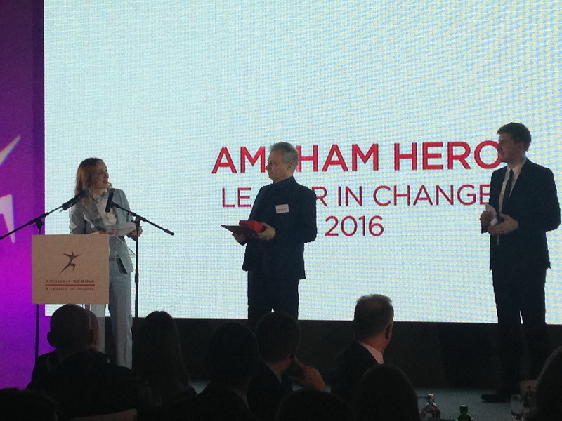 ОпштеУ четвртак, 25. фебруара 2016. године у Скупштини града Београда на свечаној церемонији, Математичкој гимназији је уручена награда AmCham HERO - Leader in Change 2016. Специјални жири Америчке привредне коморе у Србији (AmCham) једногласном одлуком номиновао је Математичку гимназију у Београду за лауреата Специјалне награде AmCham HERO - Leader in Change за 2016. годину. Жири је у образложењу, између осталог, навео да је "Математичка гимназија у протеклих неколико деценија, упркос околностима и изостанку системске подршке, успела да континуирано изнедри светски доказане и награђене таленте". Награду је примио директор Срђан Огњановић.