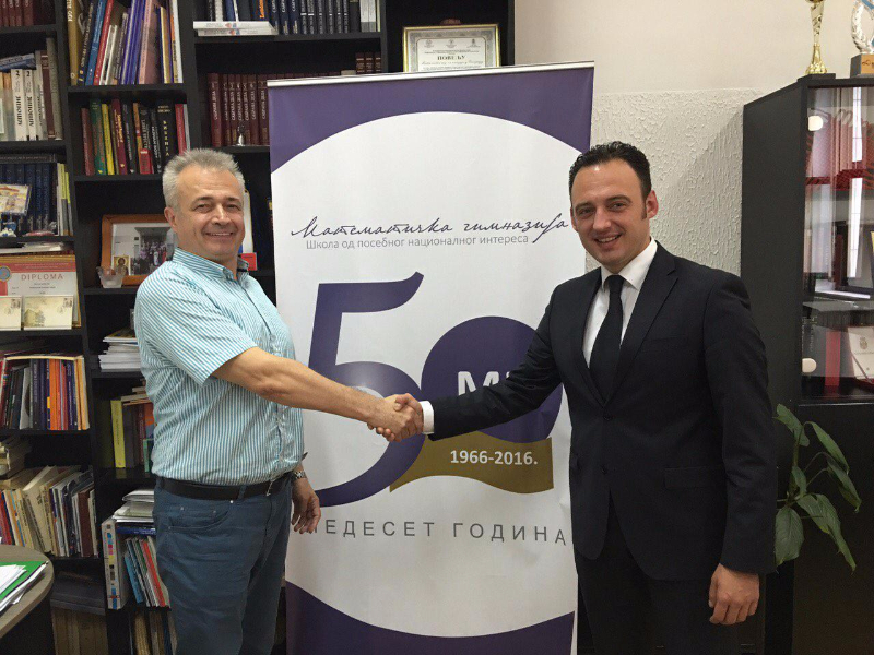ОпштеМеђународна сарадњаУ понедељак, 6. јуна 2016. године Математичку гимназију је посетио господин Спиро Ристовски, заменик министра просвете Македоније. Идеја Министарства просвете Македоније је да оснује Математичку гимназију у Скопју па је господин Ристовски дошао да се информише како наша гимназија функционише.
