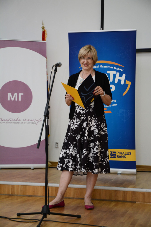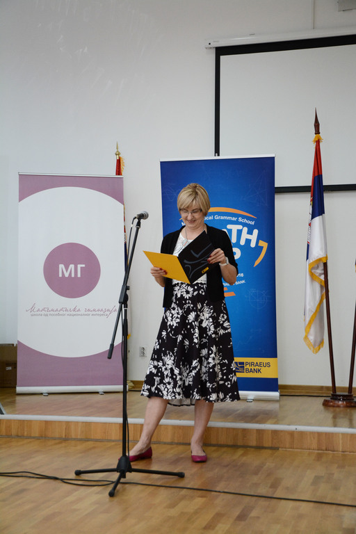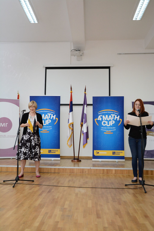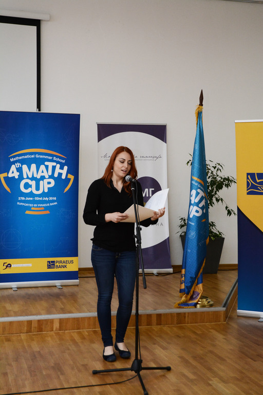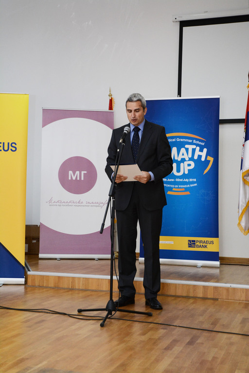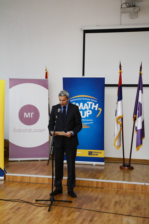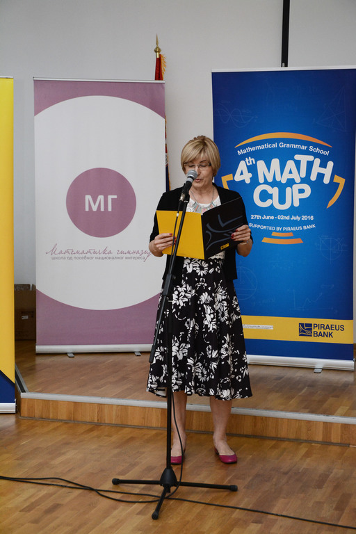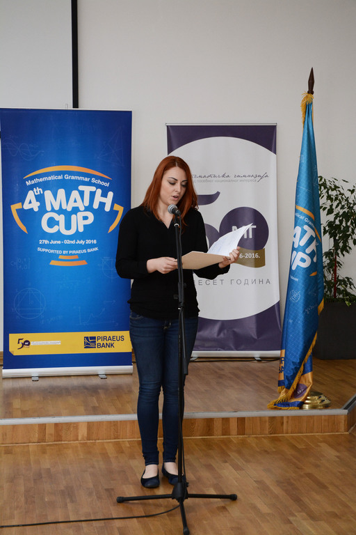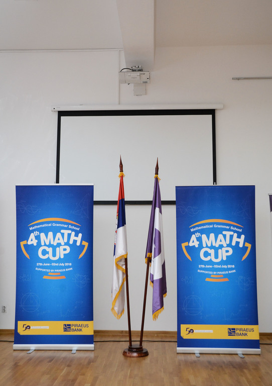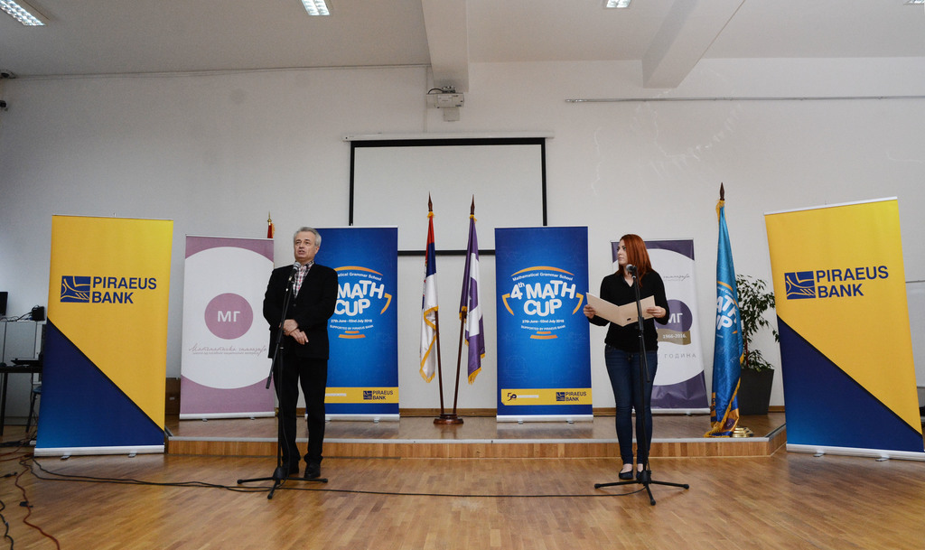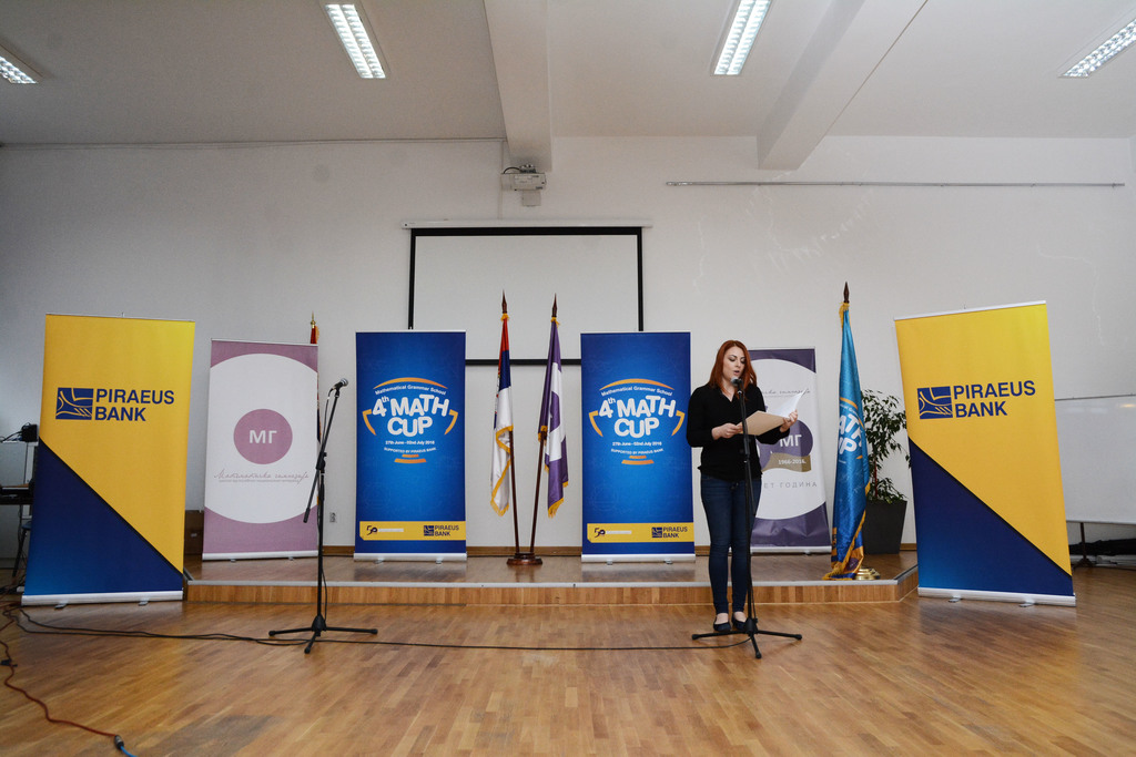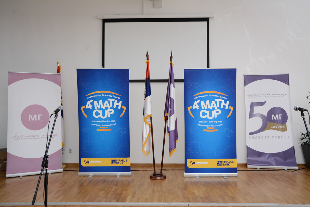 ОпштеМЕЂУНАРОДНА ТАКМИЧЕЊА-фотографијеУ уторак, 28. јуна 2016. године почео је четврти Куп Математичке гимназије. Свечана церемонија отварања Купа одржана је у свечаној сали Математичке гимназије. На свечаном отварању учесницима Купа су се обратили Срђан Огњановић, директор МГ, Андреја Младеновић, заменик градоначелника Београда и Светлана Ристић, члан Извршног одбора Пираеус банке. Куп Математичке гимназије је међународно такмичење младих математичара, физичара и информатичара које ове године траје од 27. јуна до 2. јула. Двадесет пет екипа из тринаест земаља пријавило се за ово престижно такмичење. Министарство трговине, туризма и телекомуникација је покровитељ Купа Математичке гимназије, а већ четврту годину за редом, генерални спонзор је Пираеус банка АД Београд.