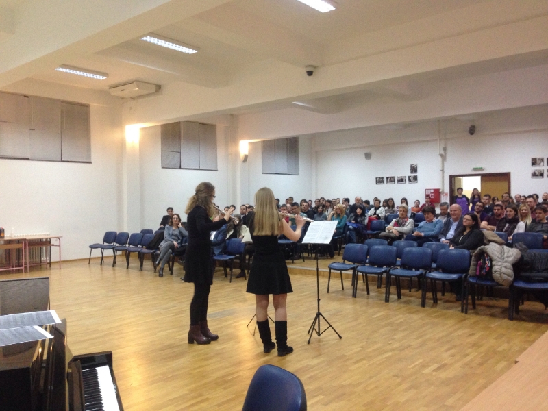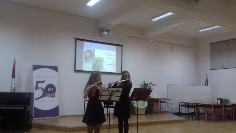 ОпштеДОГАЂАЈИ-фотографијеКао и сваке године, крајем децембра у Свечаној сали школе окупљају се бивши ученици Математичке гимназије. Ове године окупили смо се посебним поводом - за свега четири дана захваљујући бившим ђацима наше школе скупљен је новац за куповину електронске лупе, помагала које ће нашој слабовидој ученици Вери Влашки омогућити да несметано прати наставу. Електронска лупа је уручена Вери на одржаном свечаном скупу. Нашем окупљању присуствовали су и представници Ротари клуба који су најтрофејнијим ученицима Математичке гимназије уручили пригодне награде. Целом догађају посебно свечану ноту дале су наше ученице Лидија Пилиповић, Милена Недељковић, Ирина Ђанковић и Јелена Илић које су извеле композиције Баха и Вивалдија на флаути и клавиру. На свечаности је било речи и о будућим начинима сарадње са бившим ђацима који би желели да допринесу планираним активностима у школи. Захваљујемо се свима који су синоћ дошли и учинили наше окупљање лепим и садржајним.