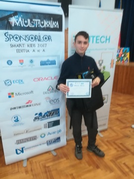 ОпштеМЕЂУНАРОДНА ТАКМИЧЕЊА-фотографијеУ суботи, 9. децембра 2017. године на традиционалном такмичењу Smart Kids у Темишвару (Румунија) наш ученик Николај Великинац (4.д) представио је рад из астрономије који је наишао на велико интересовање жирија и публике. Николај је освојио специјалну награду. Честитамо!