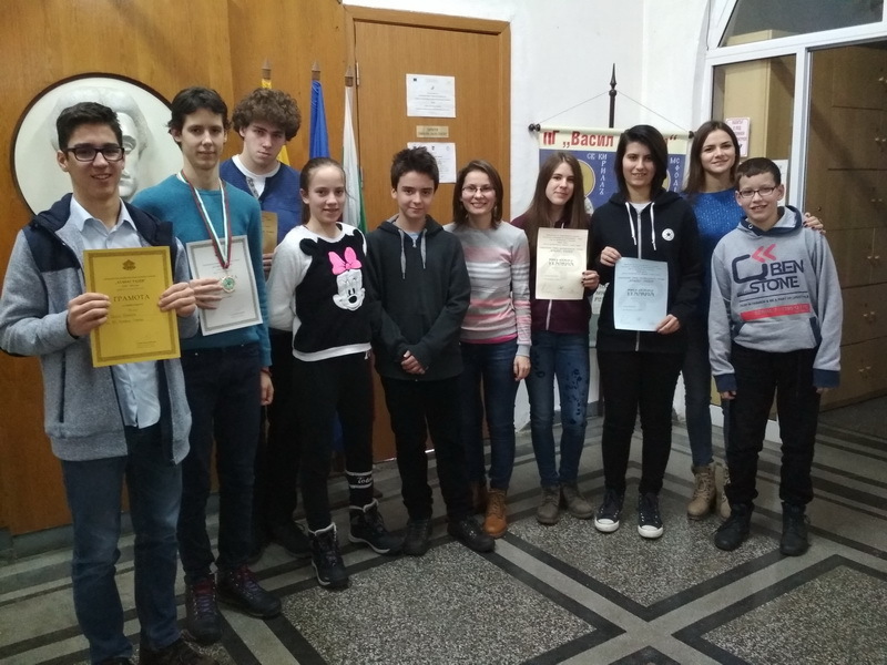 ОпштеНа 25. Државном зимском такмичењу које се традиционално одржава у Математичкој гимназији "Атанас Радев" у Јамболу, наша школа је била почасни гост. У питању је једно од четири најбитнија и најтежа такмичења у Бугарској на основу чијих резултата се бугарским ученицима додељују стипендије и врши избор за екипу на међународним такмичењима. Ове године је учествовало око 400 ученика из 19 математичких гимназија из 16 градова. Конкуренција је била јака, а задаци тежи него претходних година, а неки су помало нестандардни. Из наше школе је учествовало 9 ученика, три седмака, два осмака, један првак и троје ученика другог разреда. Како је такмичење намењено ученицима осмог разреда основне школе и ученицима од првог до четвртог средње школе, седмаци из наше школе су се такмичили са осмим разредом и били су у првих 25% осмака што је сасвим леп резултат с обзиром на то да им је ово прво инострано такмичење и да су радили задатке за старији узраст. Освојене медаље и награде су: