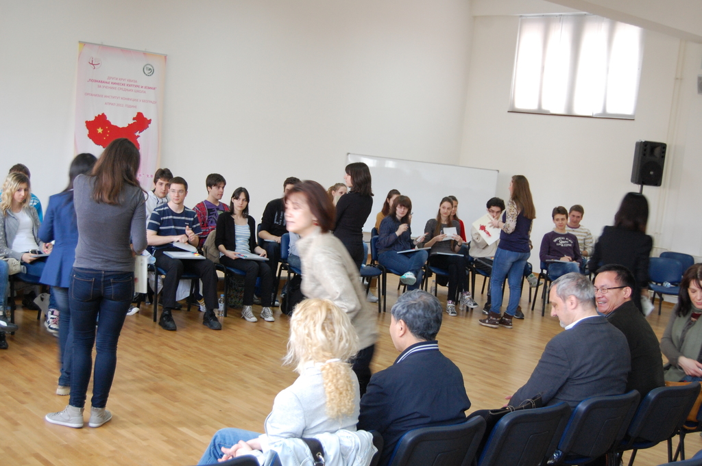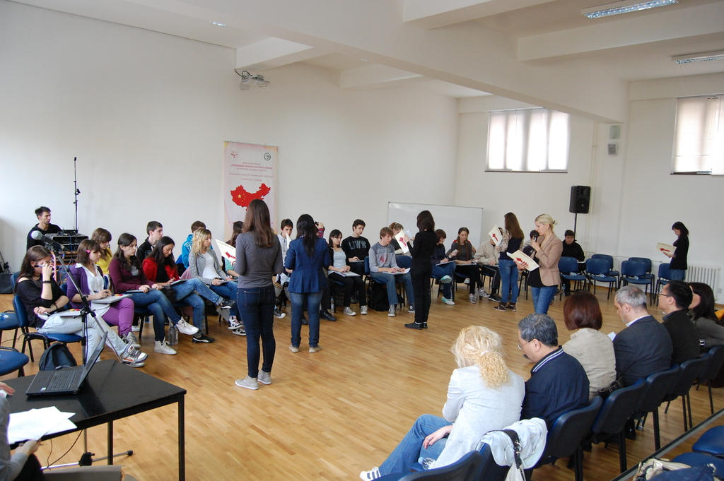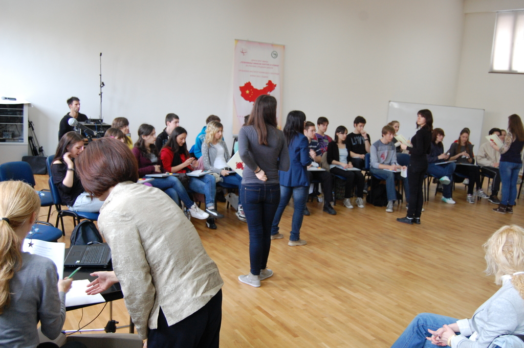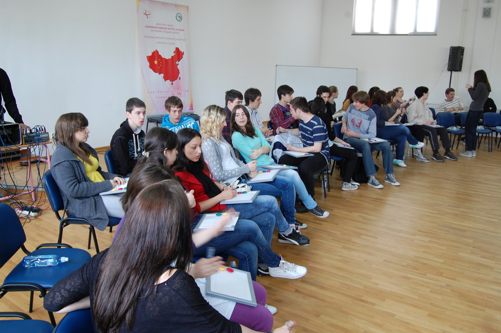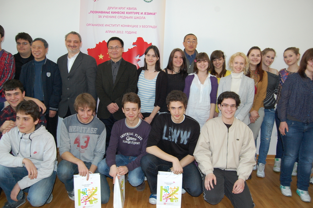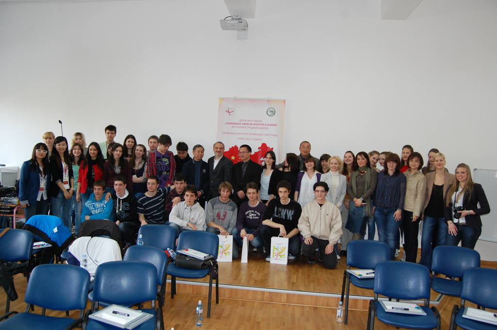 У октобру прошле године Математичка гимназија је започела сарадњу са Кинеском амбасадом и Институтом Конфучије који су омогућили нашим ученицима да уче кинески језик. Циљ ове сарадње је да ученици Математичке гимназије остваре контакт са школама истог профила у Кини, јер када је у питању математика, Кина је водећа сила у свету. Гости из Пекинга су показали велику заинтересованост за сарадњу са нашом школом, посебно када је реч о размени ученика и професора. Заинтересовани су да њихови професори помогну око припрема наших ученика за одлазак на међународне математичке олимпијаде. Као први корак ове сарадње је позив да десет наших ученика гостује у једном кинеском летњем кампу од 23. јула где ће боравити око 1000 ученика из 31 земље.