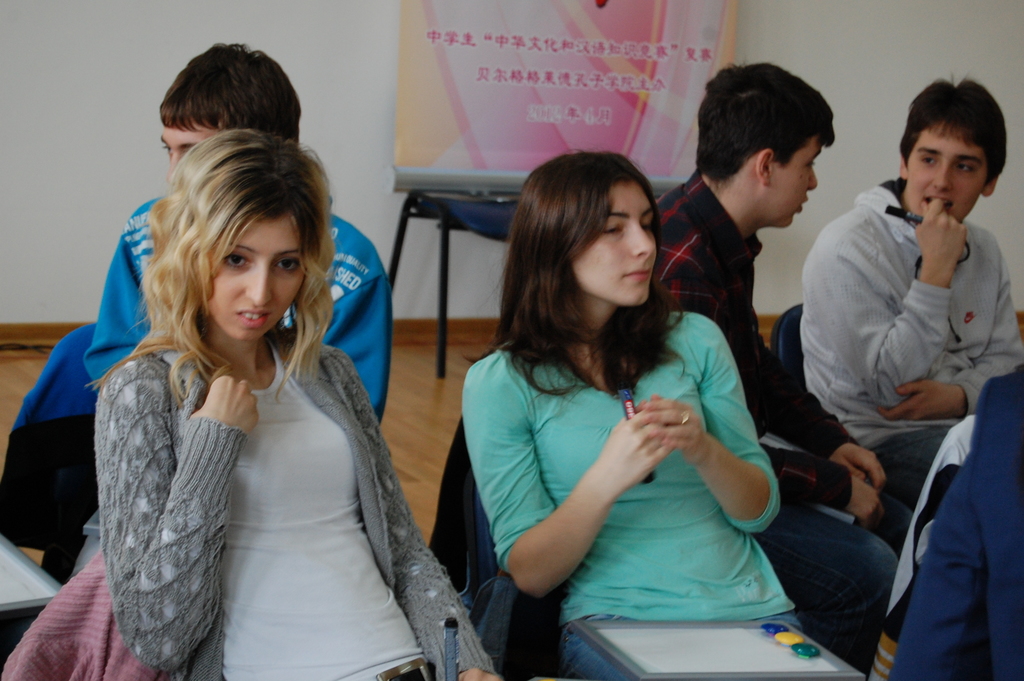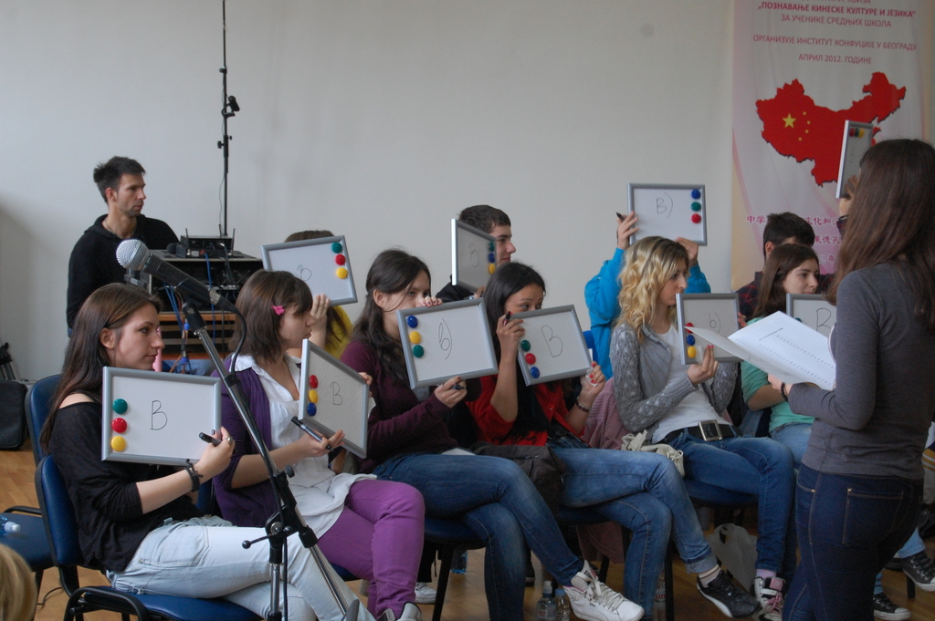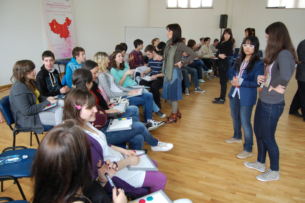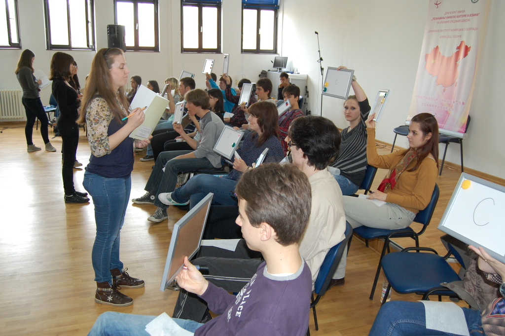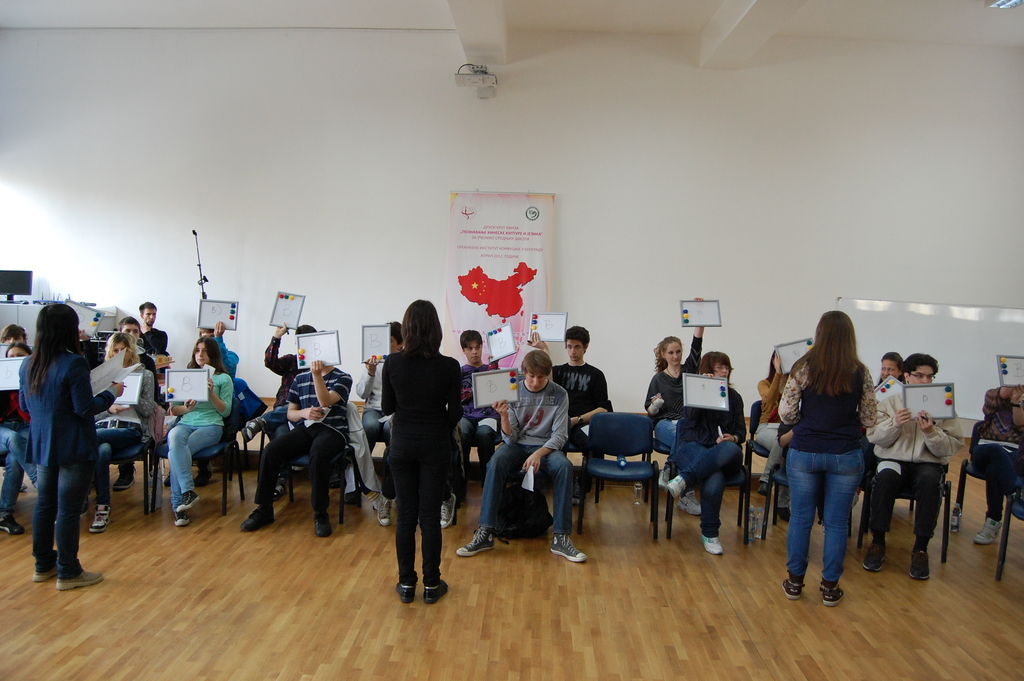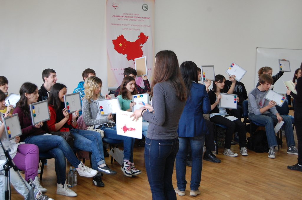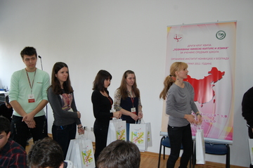 У октобру прошле године Математичка гимназија је започела сарадњу са Кинеском амбасадом и Институтом Конфучије који су омогућили нашим ученицима да уче кинески језик. Циљ ове сарадње је да ученици Математичке гимназије остваре контакт са школама истог профила у Кини, јер када је у питању математика, Кина је водећа сила у свету. Гости из Пекинга су показали велику заинтересованост за сарадњу са нашом школом, посебно када је реч о размени ученика и професора. Заинтересовани су да њихови професори помогну око припрема наших ученика за одлазак на међународне математичке олимпијаде. Као први корак ове сарадње је позив да десет наших ученика гостује у једном кинеском летњем кампу од 23. јула где ће боравити око 1000 ученика из 31 земље.