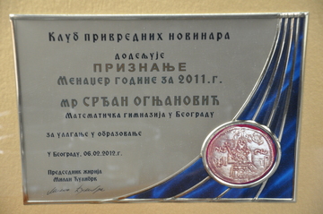Међународна сарадњаУ четвртак, 5. априла 2012. године, Математичку гимназију је посетила висока делегација из секретаријата за образовање града Пекинга (Beijing Municipal Education Commission), представници две општине и директори две престижне средње школе.