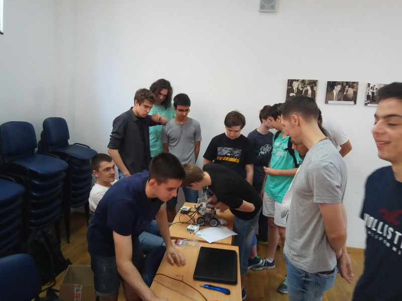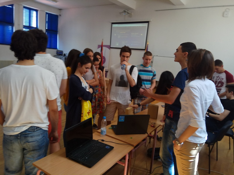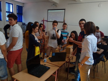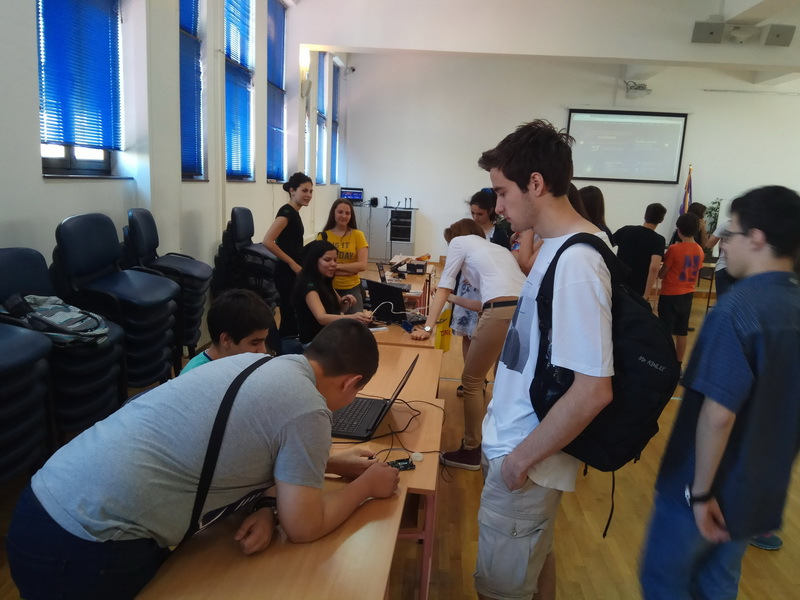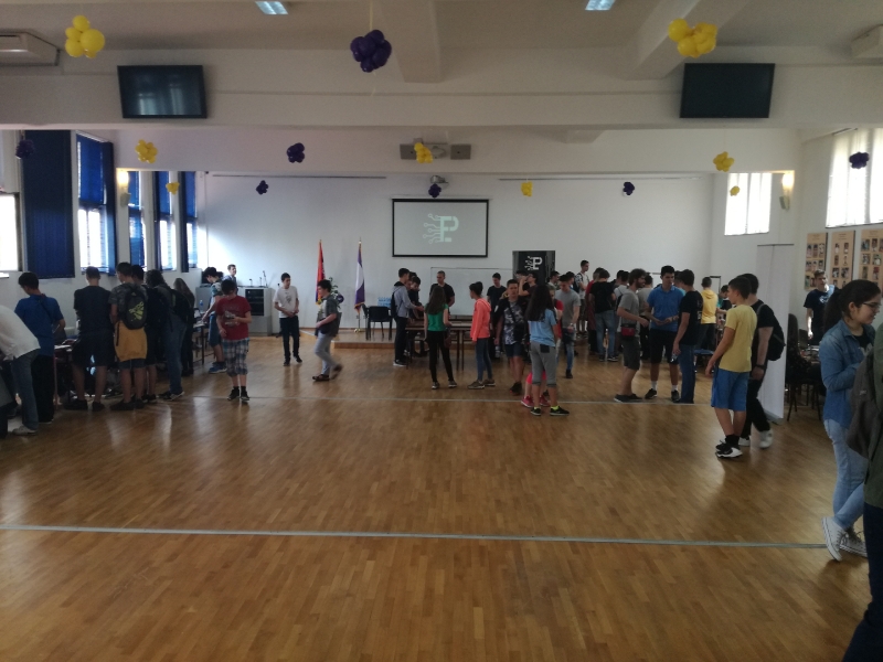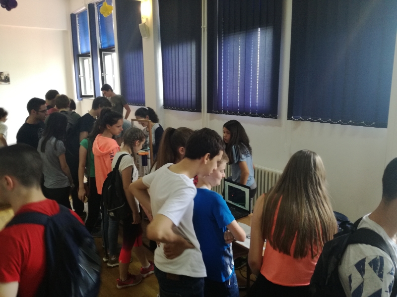 ОпштеДОГАЂАЈИ-фотографијеПо други пут је у нашој школи организована изложба радова насталих у току ове школске године на Секцији примењене физике и електронике на којој је представљено двадесетак пројеката ученика Математичке гимназије и наших гостију ученика Прве крагујевачке гимназије. Изложбу су отворили директор Математичке гимназије Срђан Огњановић и програмски директор у Истраживачкој станици Петница Никола Божић. Значај оваквог ученичког ангажовања препознала је и Школска управа града Београда која је о изложби обавестила гимназије, техничке и основне школе. У госте нам је дошло двадесетак наставника и више стотина ученика. Изложби су присуствавали и представници Министарства просвете Марија Крнета и Милош Благојевић . Њихови утисци о Секцији и самој изложби су били врло позитивни. Секција примењене физике и електронике не би била тако успешна да није било значајне помоћи од стране Истраживачке станице Петница, Телекома, TERI Engineering-a, Mikro Princ-a, UNO LUX-NS-a и Voxellab-a на чему им се искрено захваљујемо. У току изложбе уживо смо се укључили у програм Радио Београда 1, емисија „Фамилиологија“. Такође је током изложбе снимљен материја за прилог BBC-а на српском „Школа у којој се рађају роботи“ .