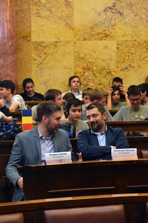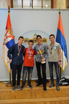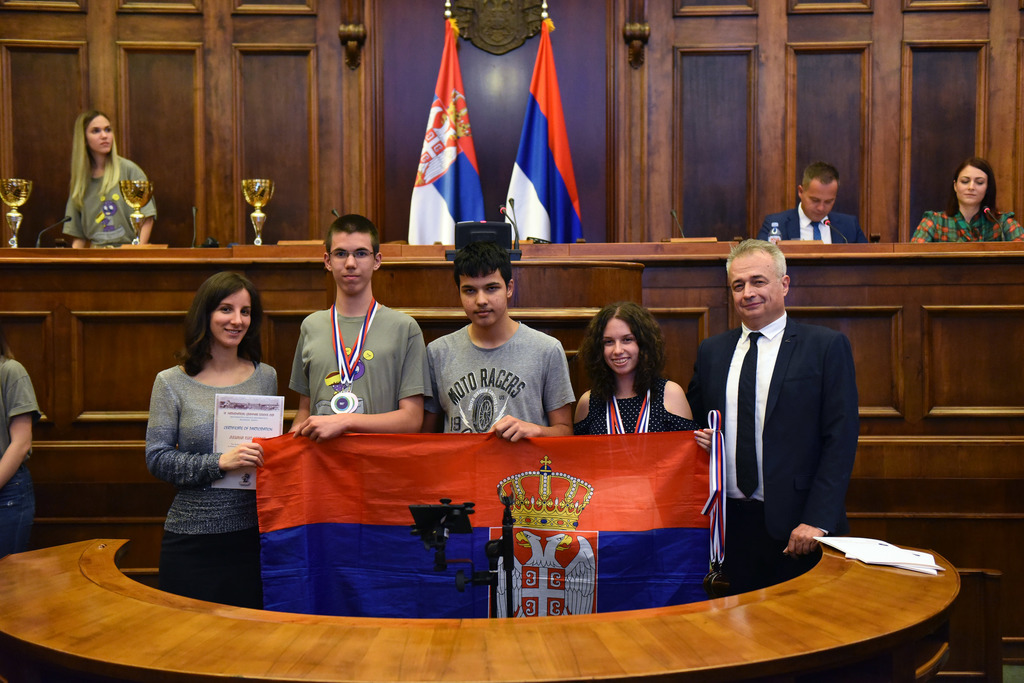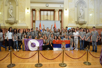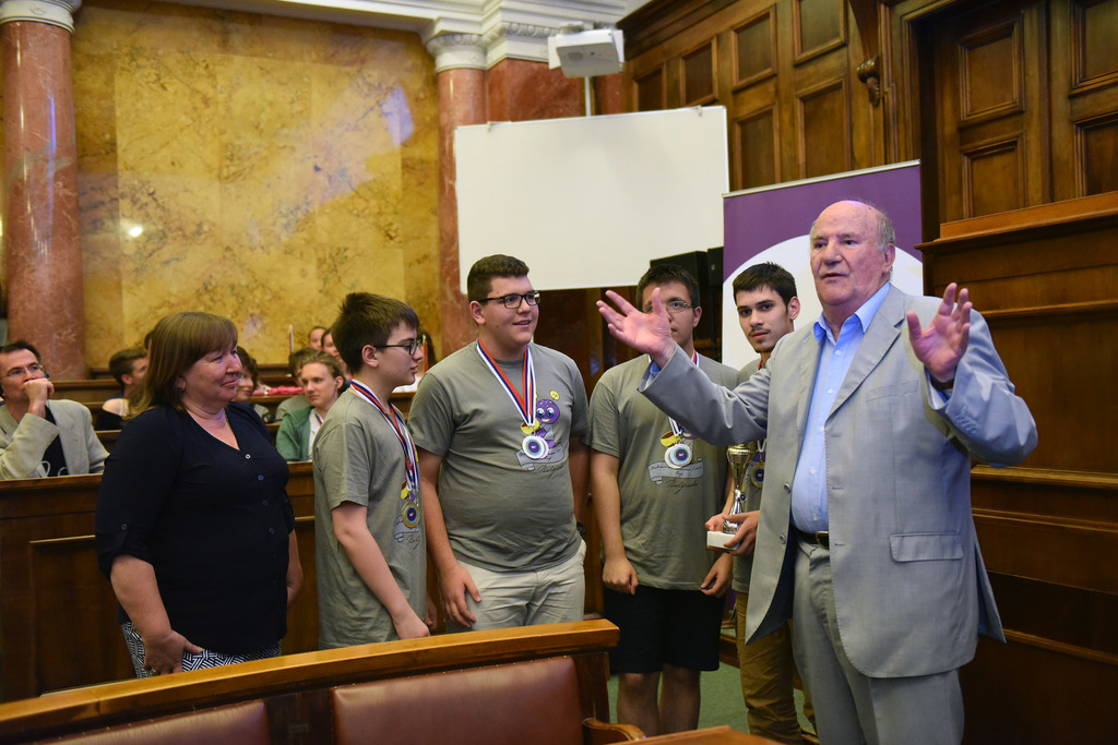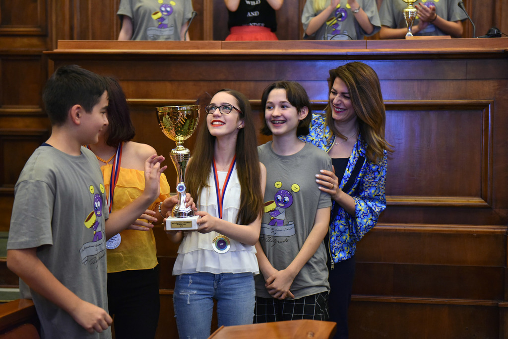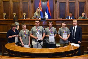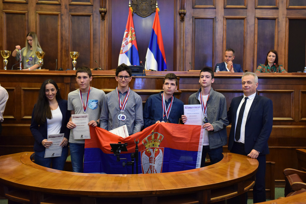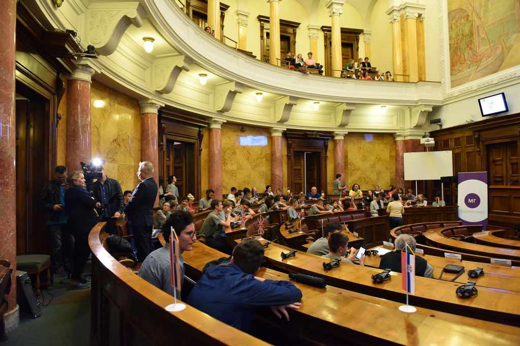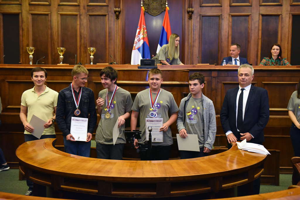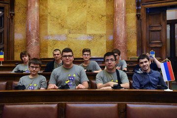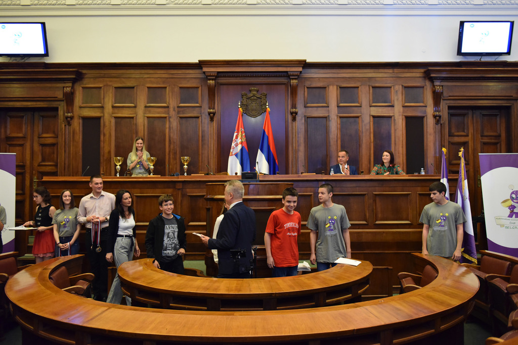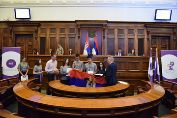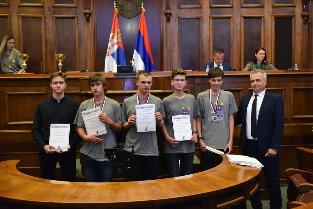 ОпштеМЕЂУНАРОДНА ТАКМИЧЕЊА-фотографијеУ четвртак, 28. јуна 2018. године у Народној скупштини Републике Србије свечано је затворен шести Куп Математичке гимназије. Гостима се обратио директор Срђан Огњановић и госпођа Татјана Матић, државни секретар у Министарству трговине, туризма и телекомуникација, која годинама показује велико разумевање за нашу школу и ову манифестацију. Министарство трговине, туризма и телекомуникација је један од покровитеља Купа, а ове године је и финансијски помогло да се ово такмчење организује. На свечаном затварању подељене су медеље најуспешнијим такмичарима и пехари најуспешнијим тимовима. Најуспешнији тим у области информатике је тим Румунија-4, најуспешнији тим у области физике је тим Русија-1, а најуспешнији тим у области математике је тим Србија-3, састављен од ученика првог разреда МГ. Фирма GDI је спонзорисала награде за три најуспешнија такмичара. Господин Нинослав Митрић, директор GDI уручио је три Самсунг таблета Страхињи Гроздићу (из тима Србија-3, најбољи такмичар у области математике), Михаилу Лебкову (из тима Русија-1, најбољи такмичар у области физике) и Лаури Нани-Руксандри (из тима Румунија-4, најбоља такмичарка у области информатике).