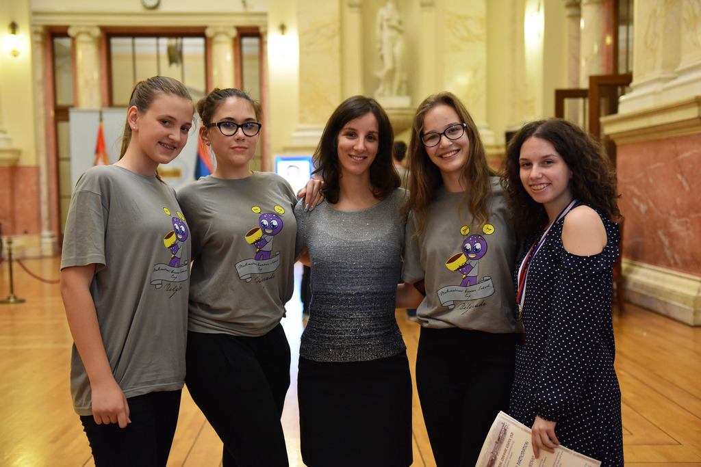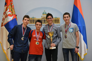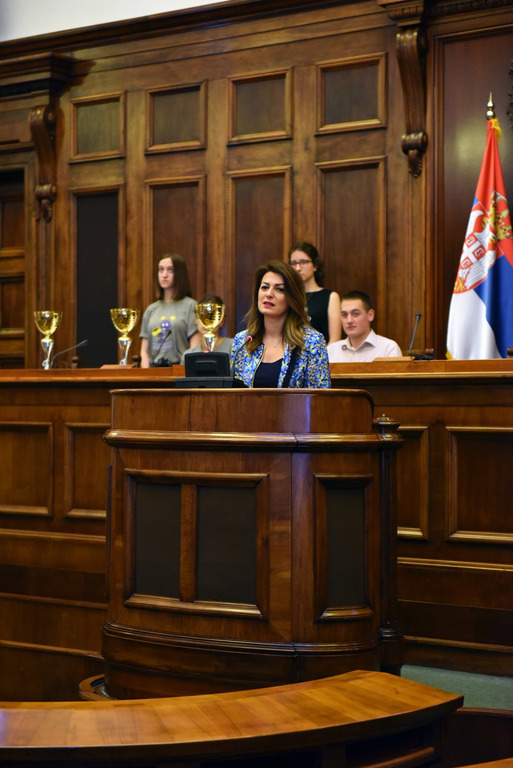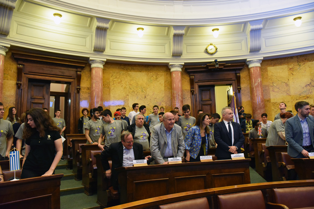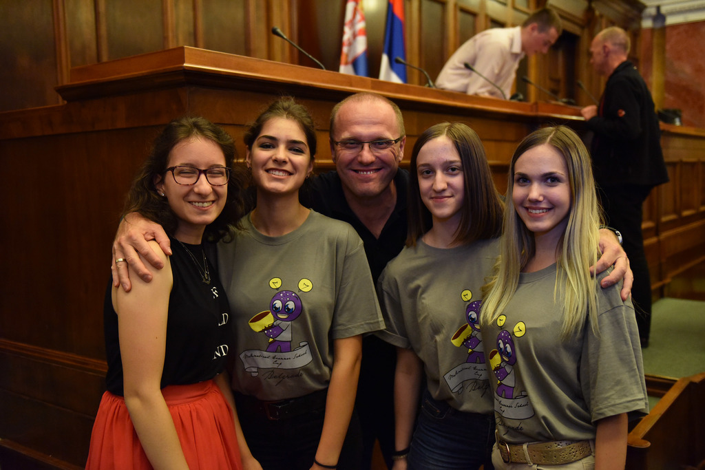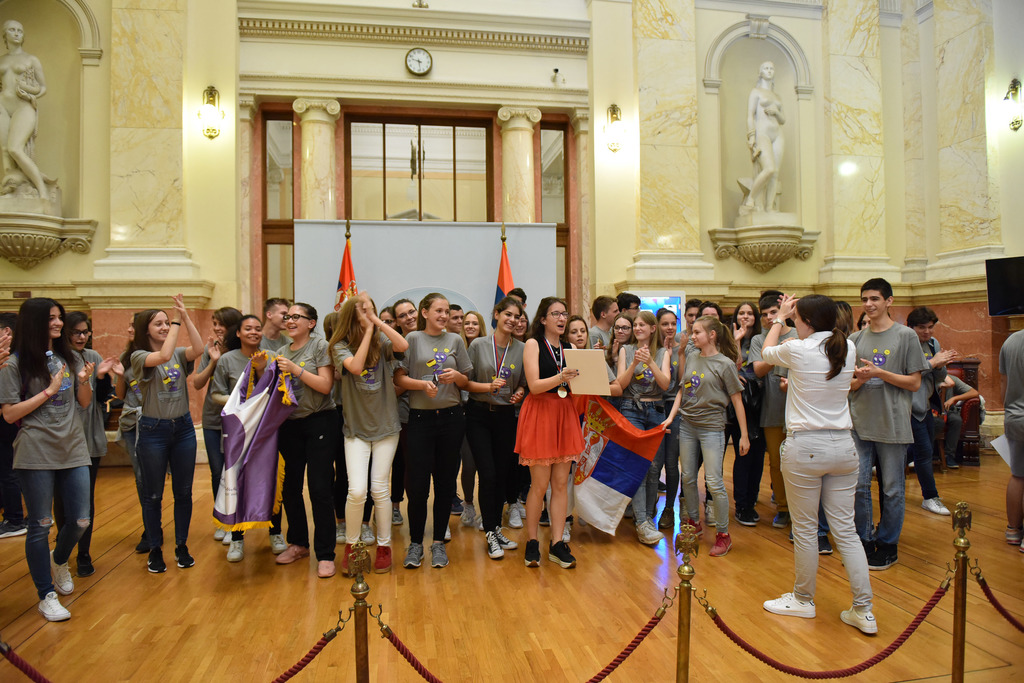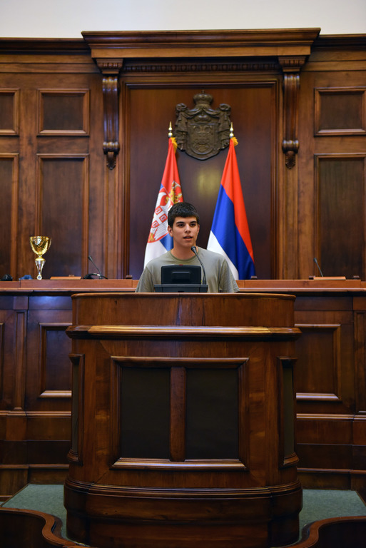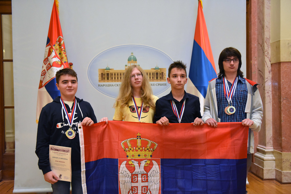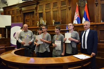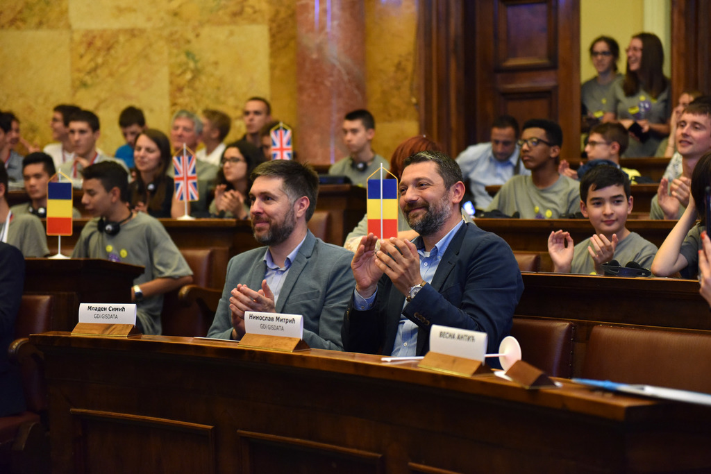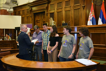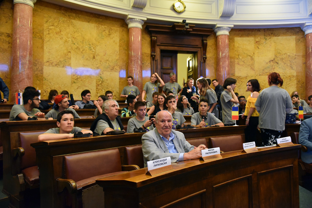 ОпштеМЕЂУНАРОДНА ТАКМИЧЕЊА-фотографијеУ четвртак, 28. јуна 2018. године у Народној скупштини Републике Србије свечано је затворен шести Куп Математичке гимназије. Гостима се обратио директор Срђан Огњановић и госпођа Татјана Матић, државни секретар у Министарству трговине, туризма и телекомуникација, која годинама показује велико разумевање за нашу школу и ову манифестацију. Министарство трговине, туризма и телекомуникација је један од покровитеља Купа, а ове године је и финансијски помогло да се ово такмчење организује. На свечаном затварању подељене су медеље најуспешнијим такмичарима и пехари најуспешнијим тимовима. Најуспешнији тим у области информатике је тим Румунија-4, најуспешнији тим у области физике је тим Русија-1, а најуспешнији тим у области математике је тим Србија-3, састављен од ученика првог разреда МГ. Фирма GDI је спонзорисала награде за три најуспешнија такмичара. Господин Нинослав Митрић, директор GDI уручио је три Самсунг таблета Страхињи Гроздићу (из тима Србија-3, најбољи такмичар у области математике), Михаилу Лебкову (из тима Русија-1, најбољи такмичар у области физике) и Лаури Нани-Руксандри (из тима Румунија-4, најбоља такмичарка у области информатике).