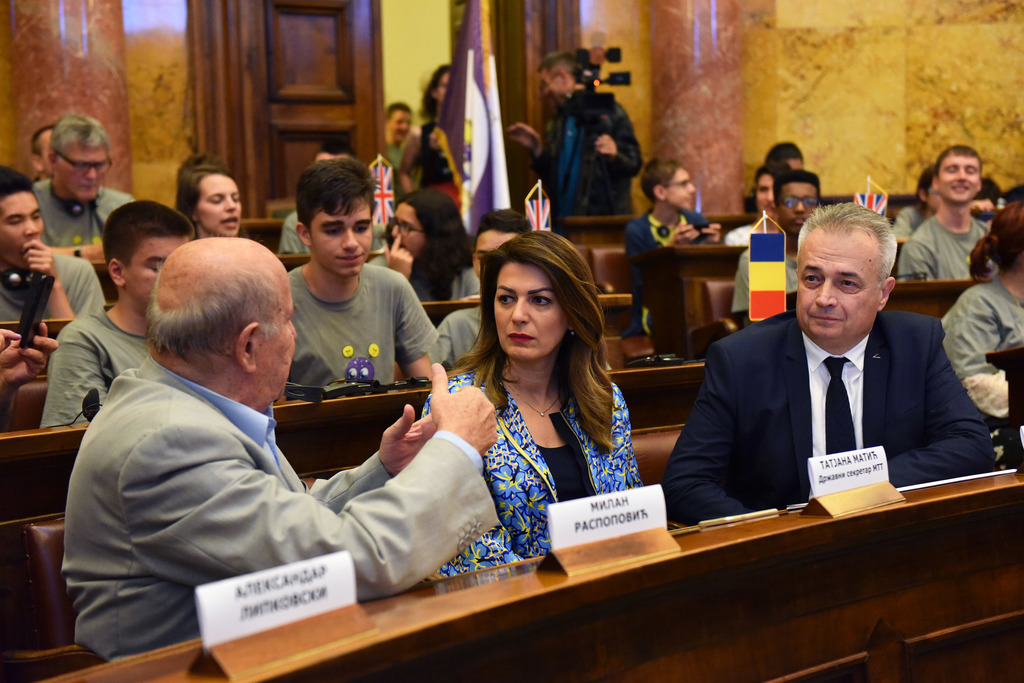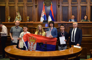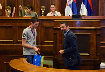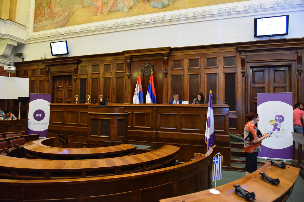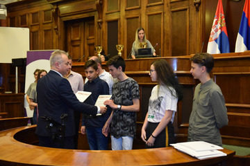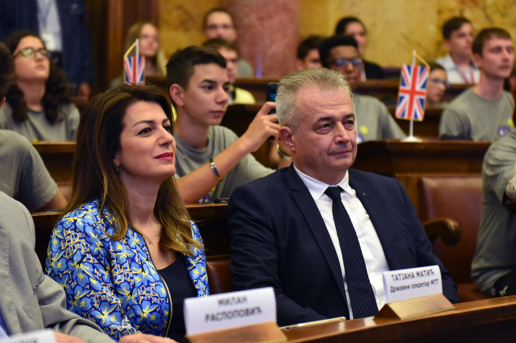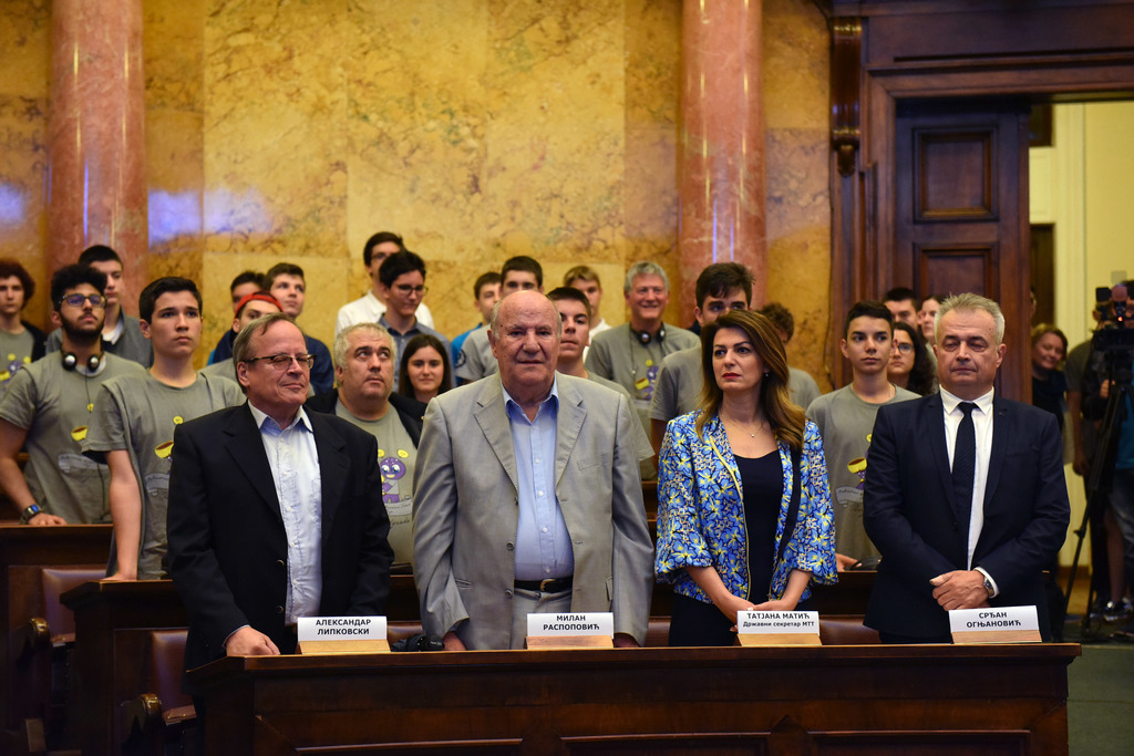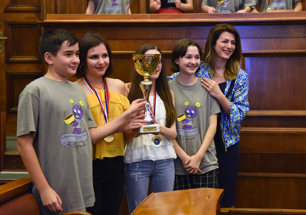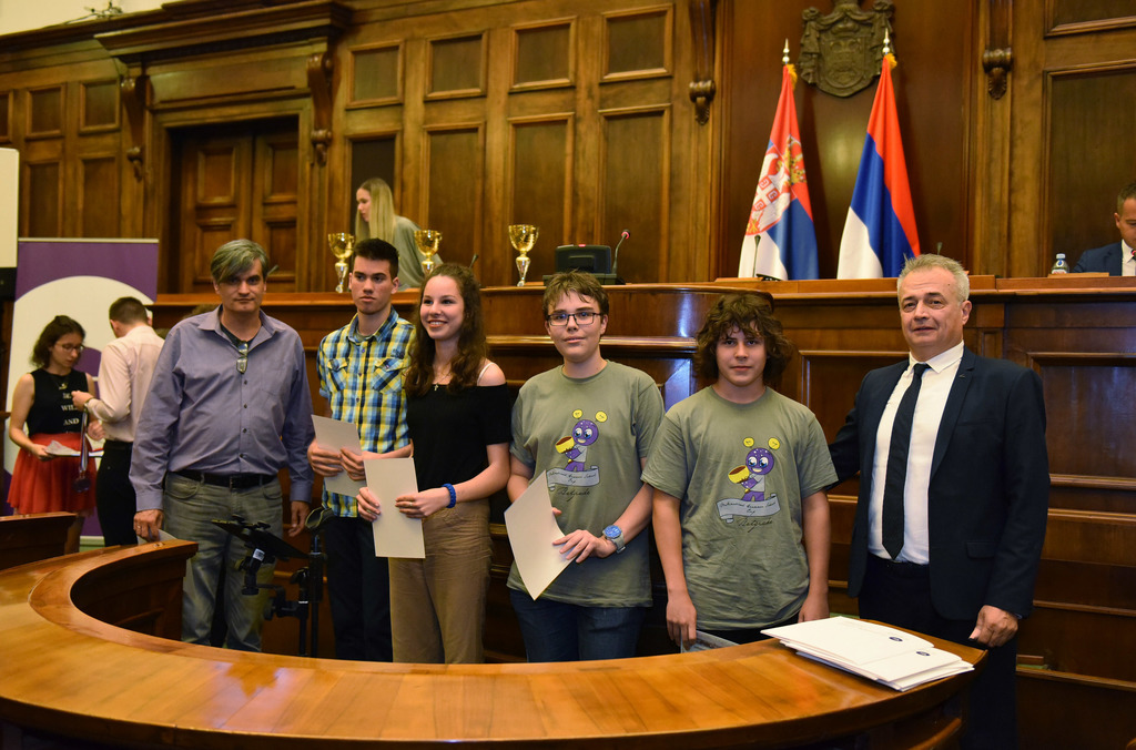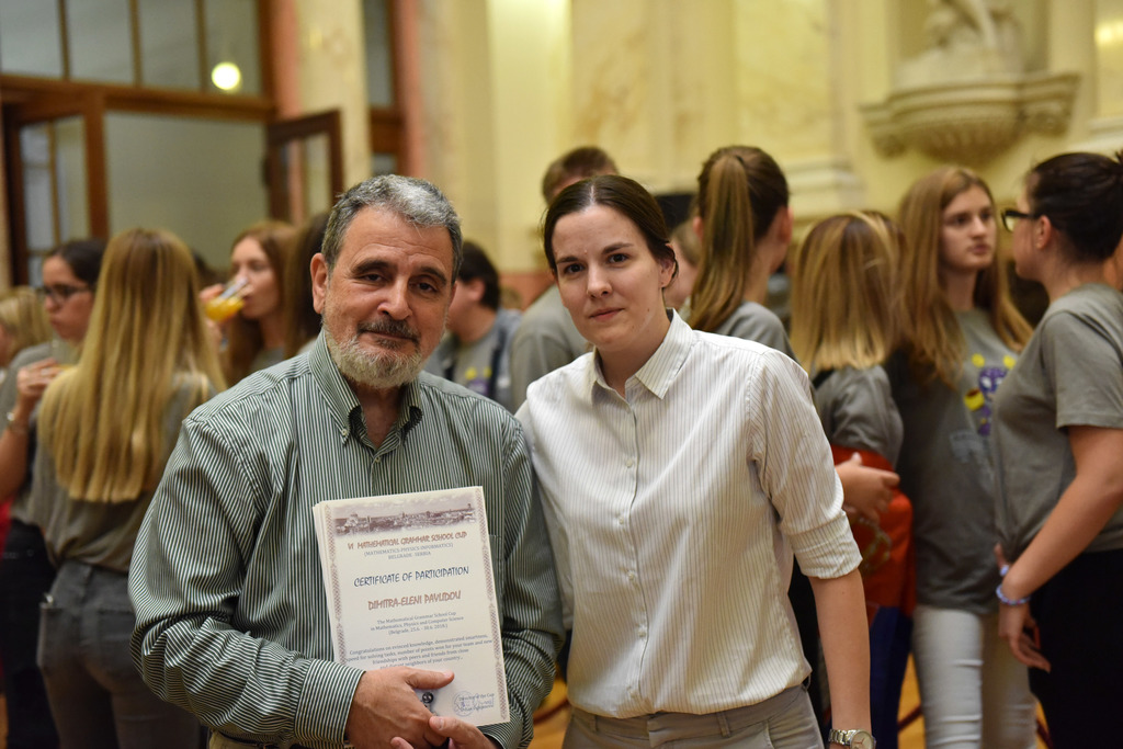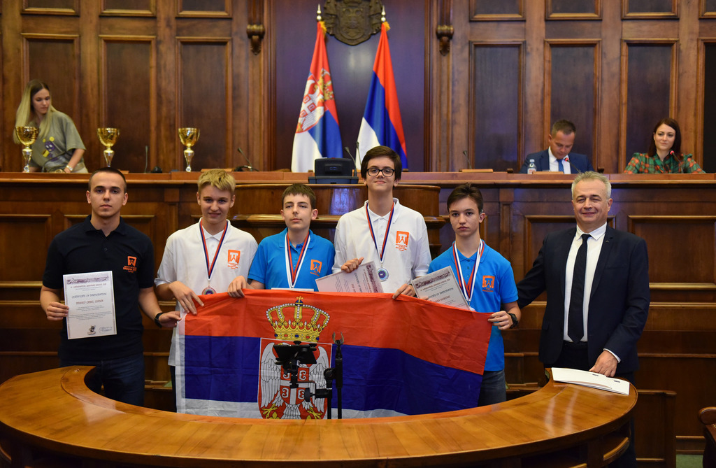 ОпштеМЕЂУНАРОДНА ТАКМИЧЕЊА-фотографијеУ четвртак, 28. јуна 2018. године у Народној скупштини Републике Србије свечано је затворен шести Куп Математичке гимназије. Гостима се обратио директор Срђан Огњановић и госпођа Татјана Матић, државни секретар у Министарству трговине, туризма и телекомуникација, која годинама показује велико разумевање за нашу школу и ову манифестацију. Министарство трговине, туризма и телекомуникација је један од покровитеља Купа, а ове године је и финансијски помогло да се ово такмчење организује. На свечаном затварању подељене су медеље најуспешнијим такмичарима и пехари најуспешнијим тимовима. Најуспешнији тим у области информатике је тим Румунија-4, најуспешнији тим у области физике је тим Русија-1, а најуспешнији тим у области математике је тим Србија-3, састављен од ученика првог разреда МГ. Фирма GDI је спонзорисала награде за три најуспешнија такмичара. Господин Нинослав Митрић, директор GDI уручио је три Самсунг таблета Страхињи Гроздићу (из тима Србија-3, најбољи такмичар у области математике), Михаилу Лебкову (из тима Русија-1, најбољи такмичар у области физике) и Лаури Нани-Руксандри (из тима Румунија-4, најбоља такмичарка у области информатике).