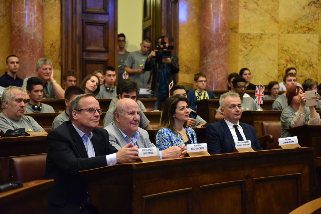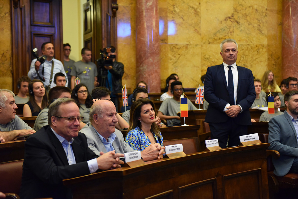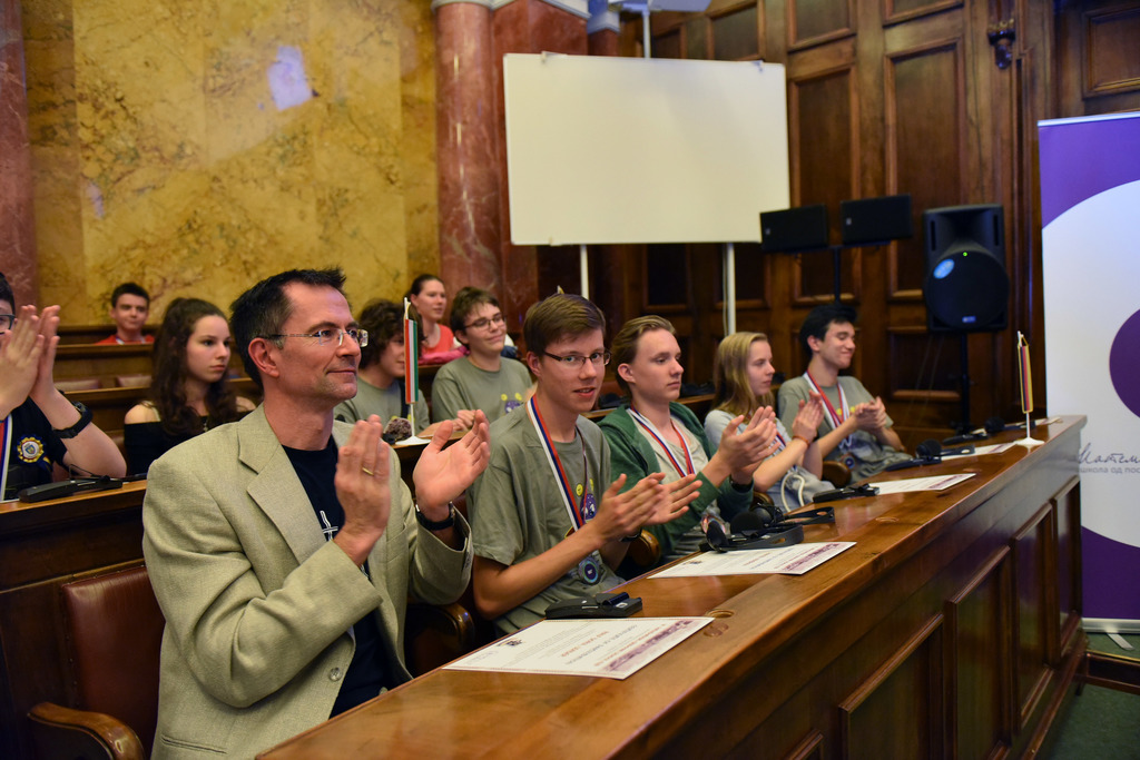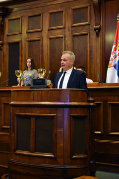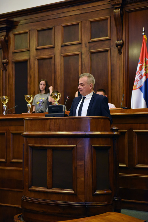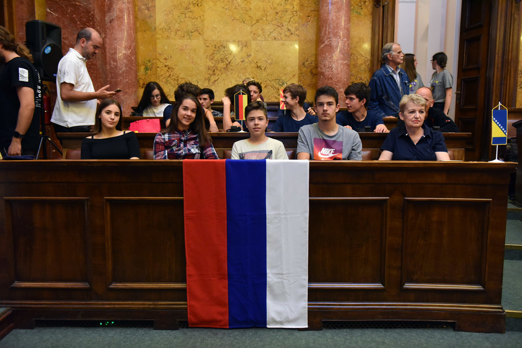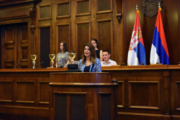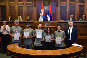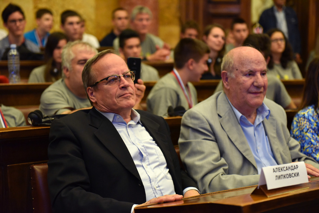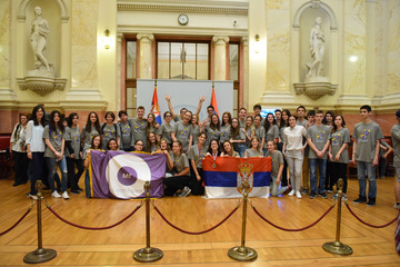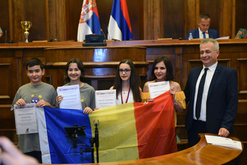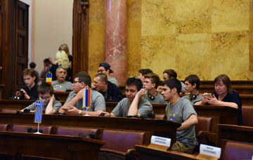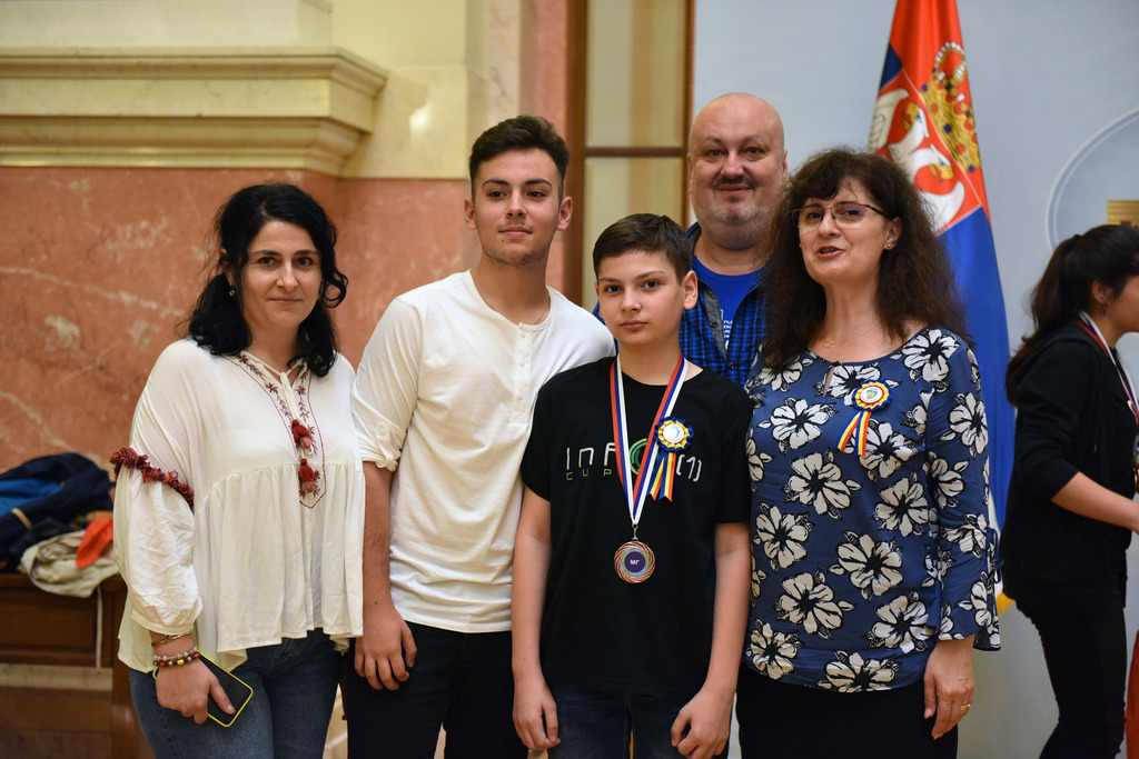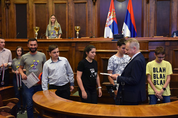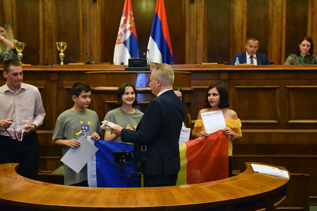 ОпштеМЕЂУНАРОДНА ТАКМИЧЕЊА-фотографијеУ четвртак, 28. јуна 2018. године у Народној скупштини Републике Србије свечано је затворен шести Куп Математичке гимназије. Гостима се обратио директор Срђан Огњановић и госпођа Татјана Матић, државни секретар у Министарству трговине, туризма и телекомуникација, која годинама показује велико разумевање за нашу школу и ову манифестацију. Министарство трговине, туризма и телекомуникација је један од покровитеља Купа, а ове године је и финансијски помогло да се ово такмчење организује. На свечаном затварању подељене су медеље најуспешнијим такмичарима и пехари најуспешнијим тимовима. Најуспешнији тим у области информатике је тим Румунија-4, најуспешнији тим у области физике је тим Русија-1, а најуспешнији тим у области математике је тим Србија-3, састављен од ученика првог разреда МГ. Фирма GDI је спонзорисала награде за три најуспешнија такмичара. Господин Нинослав Митрић, директор GDI уручио је три Самсунг таблета Страхињи Гроздићу (из тима Србија-3, најбољи такмичар у области математике), Михаилу Лебкову (из тима Русија-1, најбољи такмичар у области физике) и Лаури Нани-Руксандри (из тима Румунија-4, најбоља такмичарка у области информатике).