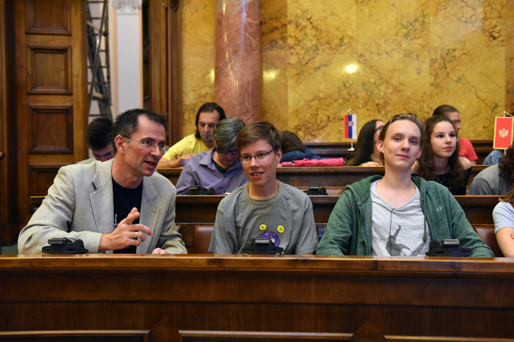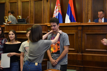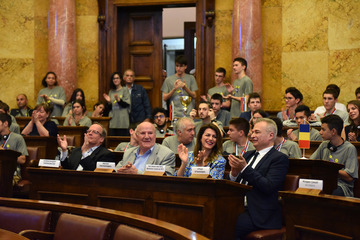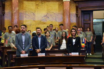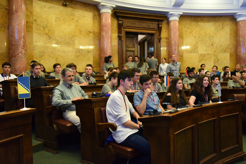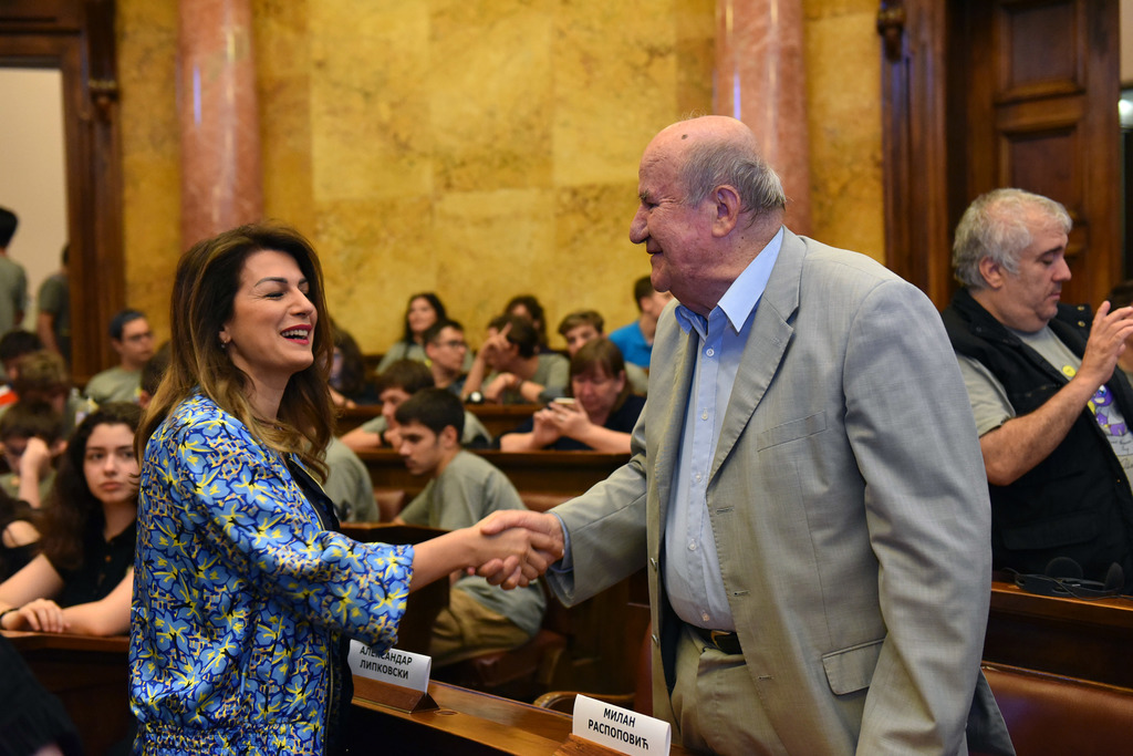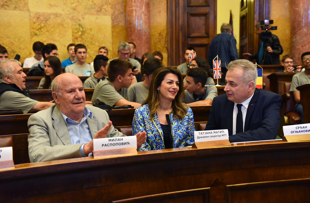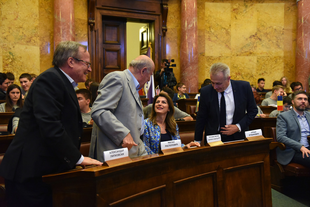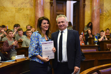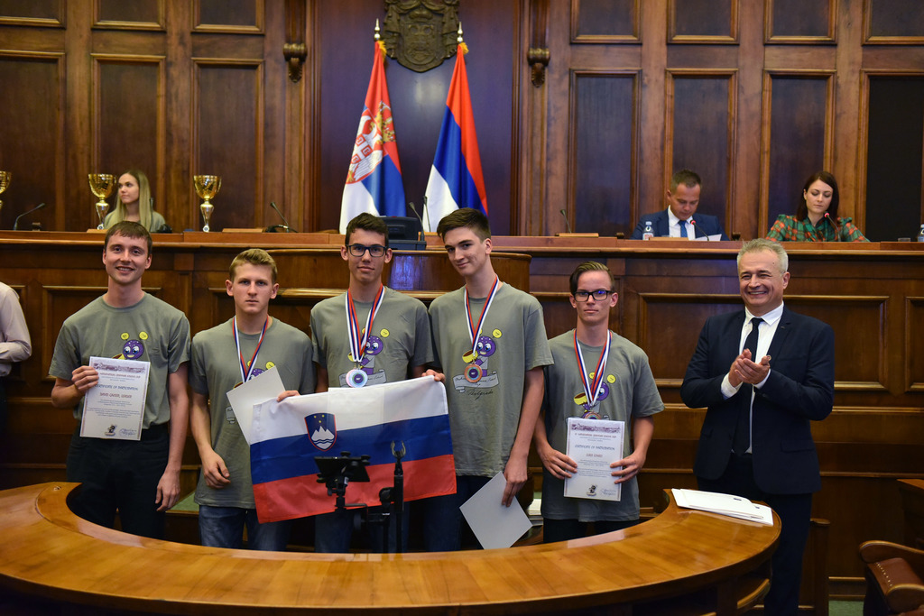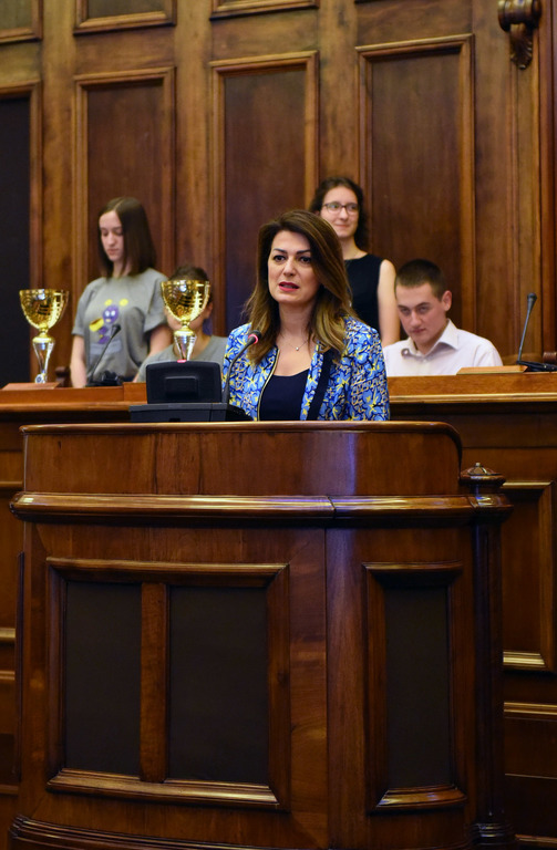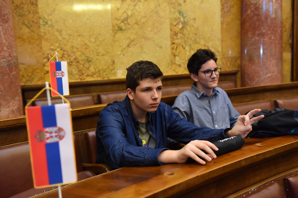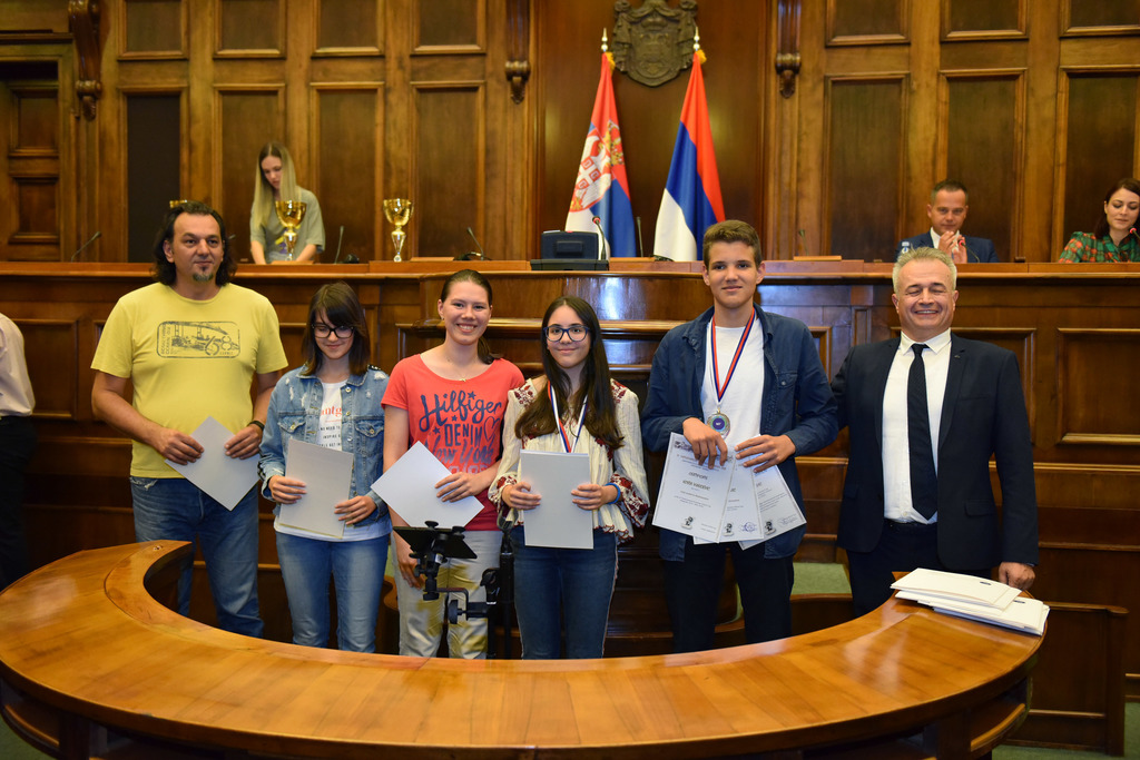 ОпштеМЕЂУНАРОДНА ТАКМИЧЕЊА-фотографијеУ четвртак, 28. јуна 2018. године у Народној скупштини Републике Србије свечано је затворен шести Куп Математичке гимназије. Гостима се обратио директор Срђан Огњановић и госпођа Татјана Матић, државни секретар у Министарству трговине, туризма и телекомуникација, која годинама показује велико разумевање за нашу школу и ову манифестацију. Министарство трговине, туризма и телекомуникација је један од покровитеља Купа, а ове године је и финансијски помогло да се ово такмчење организује. На свечаном затварању подељене су медеље најуспешнијим такмичарима и пехари најуспешнијим тимовима. Најуспешнији тим у области информатике је тим Румунија-4, најуспешнији тим у области физике је тим Русија-1, а најуспешнији тим у области математике је тим Србија-3, састављен од ученика првог разреда МГ. Фирма GDI је спонзорисала награде за три најуспешнија такмичара. Господин Нинослав Митрић, директор GDI уручио је три Самсунг таблета Страхињи Гроздићу (из тима Србија-3, најбољи такмичар у области математике), Михаилу Лебкову (из тима Русија-1, најбољи такмичар у области физике) и Лаури Нани-Руксандри (из тима Румунија-4, најбоља такмичарка у области информатике).