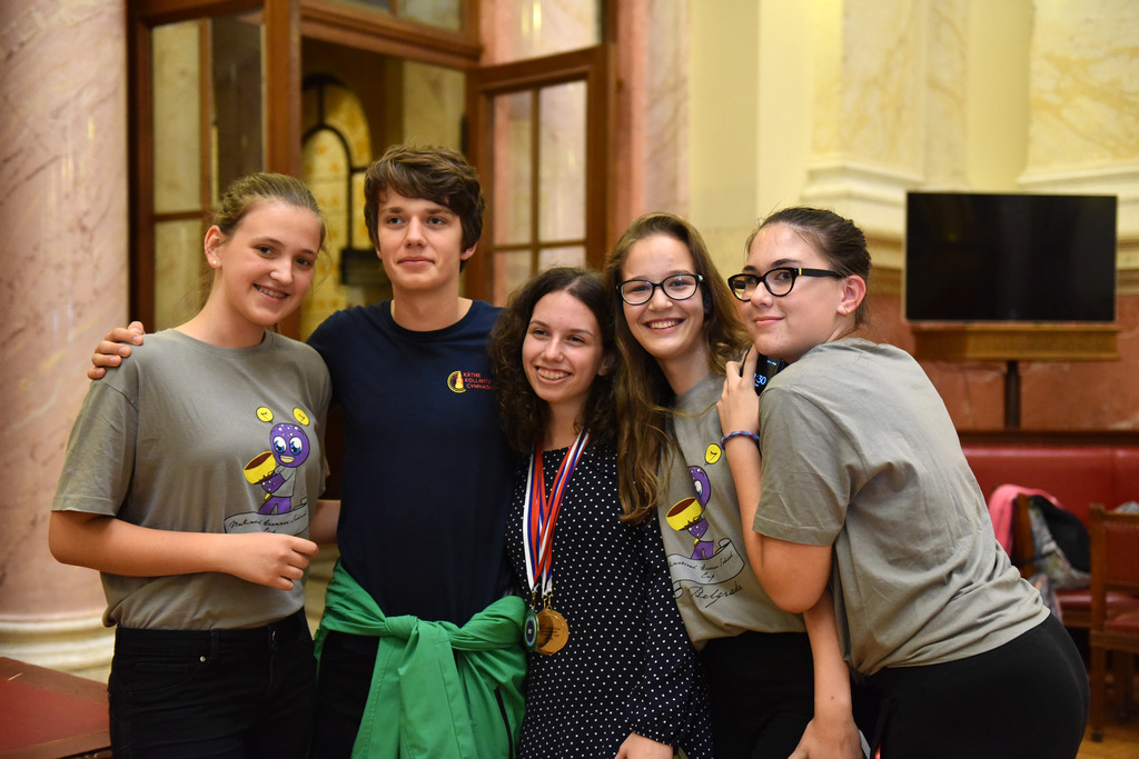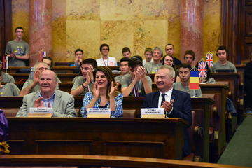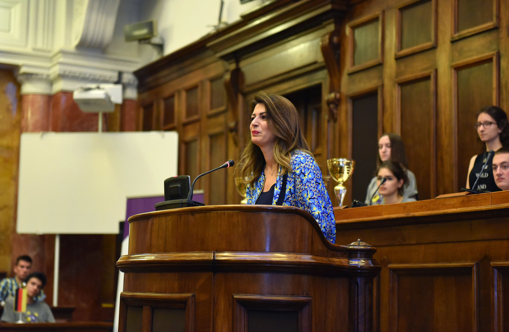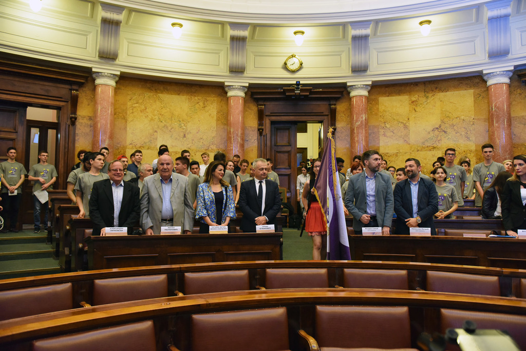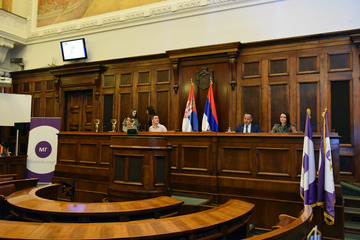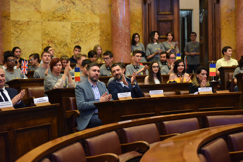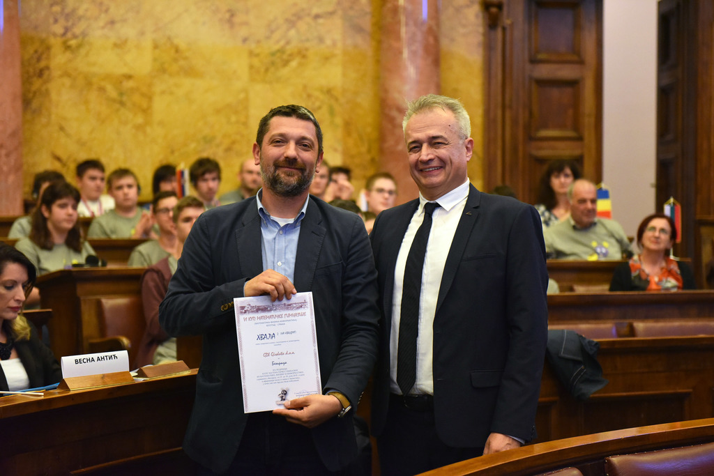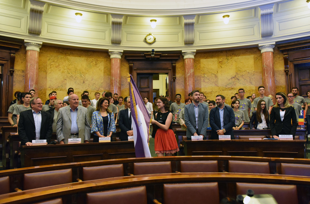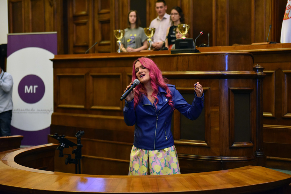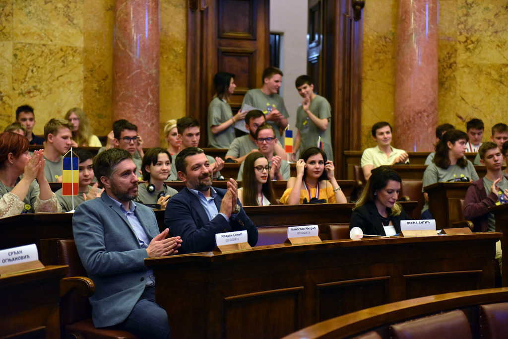 ОпштеМЕЂУНАРОДНА ТАКМИЧЕЊА-фотографијеУ четвртак, 28. јуна 2018. године у Народној скупштини Републике Србије свечано је затворен шести Куп Математичке гимназије. Гостима се обратио директор Срђан Огњановић и госпођа Татјана Матић, државни секретар у Министарству трговине, туризма и телекомуникација, која годинама показује велико разумевање за нашу школу и ову манифестацију. Министарство трговине, туризма и телекомуникација је један од покровитеља Купа, а ове године је и финансијски помогло да се ово такмчење организује. На свечаном затварању подељене су медеље најуспешнијим такмичарима и пехари најуспешнијим тимовима. Најуспешнији тим у области информатике је тим Румунија-4, најуспешнији тим у области физике је тим Русија-1, а најуспешнији тим у области математике је тим Србија-3, састављен од ученика првог разреда МГ. Фирма GDI је спонзорисала награде за три најуспешнија такмичара. Господин Нинослав Митрић, директор GDI уручио је три Самсунг таблета Страхињи Гроздићу (из тима Србија-3, најбољи такмичар у области математике), Михаилу Лебкову (из тима Русија-1, најбољи такмичар у области физике) и Лаури Нани-Руксандри (из тима Румунија-4, најбоља такмичарка у области информатике).