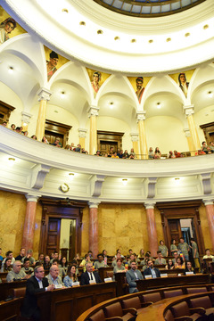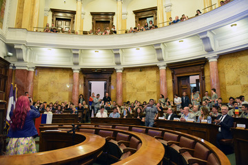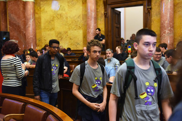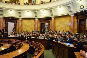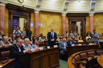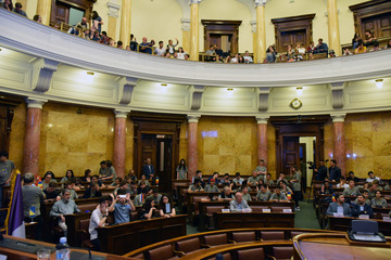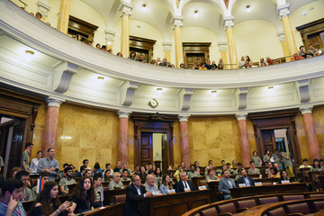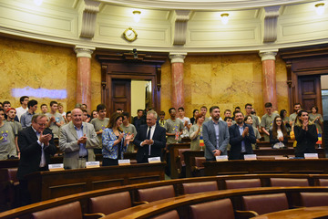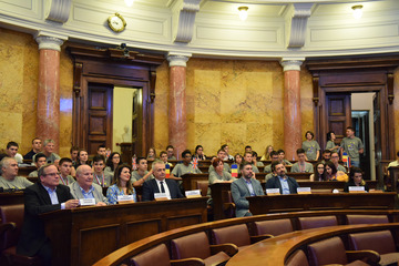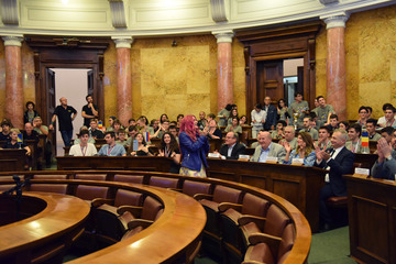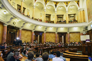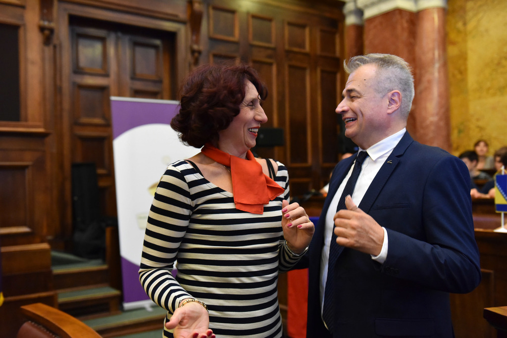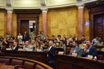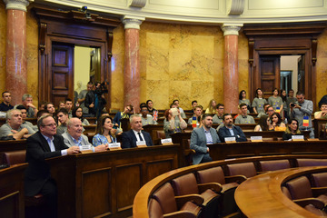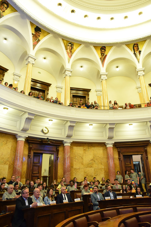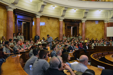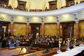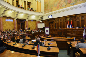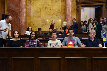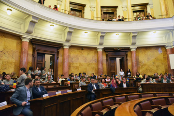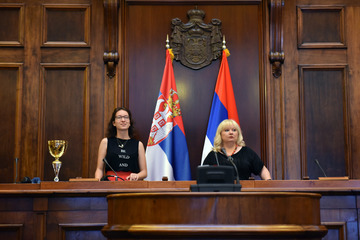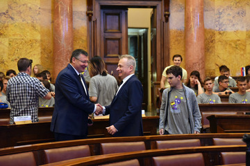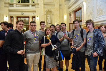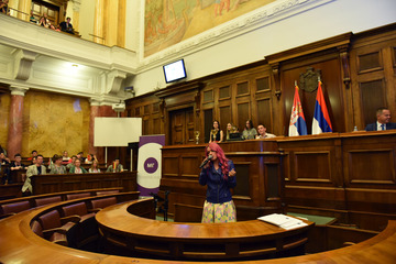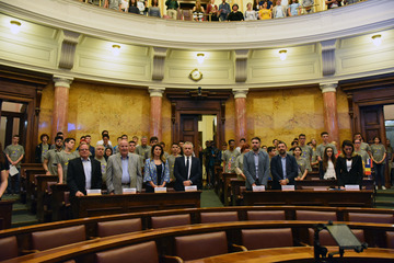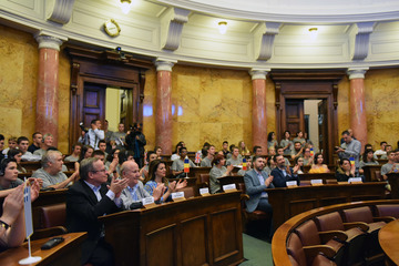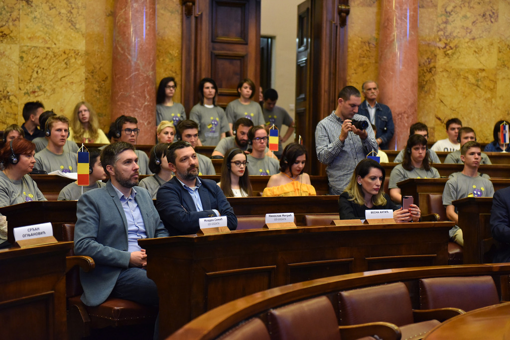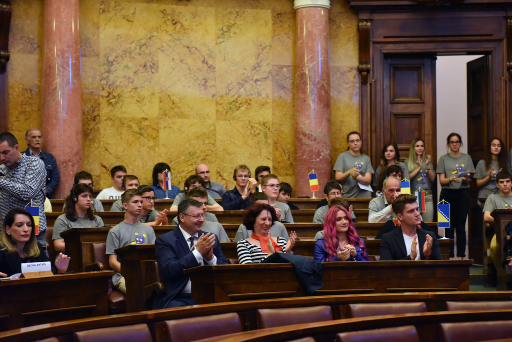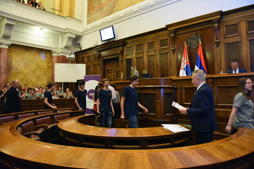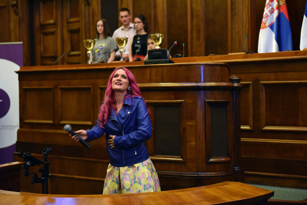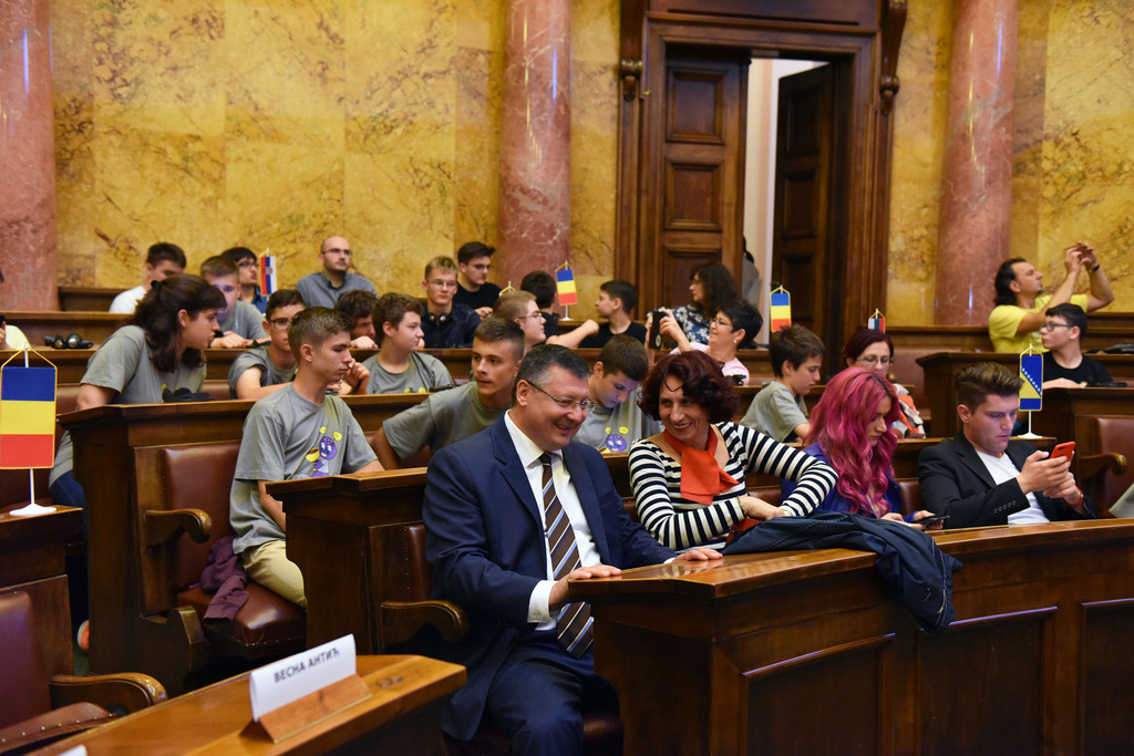 ОпштеМЕЂУНАРОДНА ТАКМИЧЕЊА-фотографијеУ четвртак, 28. јуна 2018. године у Народној скупштини Републике Србије свечано је затворен шести Куп Математичке гимназије. Гостима се обратио директор Срђан Огњановић и госпођа Татјана Матић, државни секретар у Министарству трговине, туризма и телекомуникација, која годинама показује велико разумевање за нашу школу и ову манифестацију. Министарство трговине, туризма и телекомуникација је један од покровитеља Купа, а ове године је и финансијски помогло да се ово такмчење организује. На свечаном затварању подељене су медеље најуспешнијим такмичарима и пехари најуспешнијим тимовима. Најуспешнији тим у области информатике је тим Румунија-4, најуспешнији тим у области физике је тим Русија-1, а најуспешнији тим у области математике је тим Србија-3, састављен од ученика првог разреда МГ. Фирма GDI је спонзорисала награде за три најуспешнија такмичара. Господин Нинослав Митрић, директор GDI уручио је три Самсунг таблета Страхињи Гроздићу (из тима Србија-3, најбољи такмичар у области математике), Михаилу Лебкову (из тима Русија-1, најбољи такмичар у области физике) и Лаури Нани-Руксандри (из тима Румунија-4, најбоља такмичарка у области информатике).