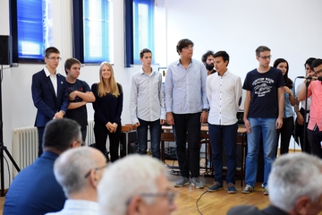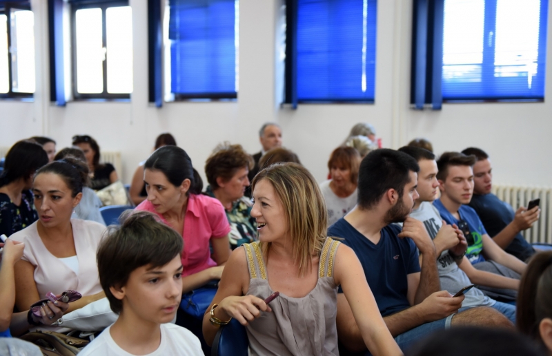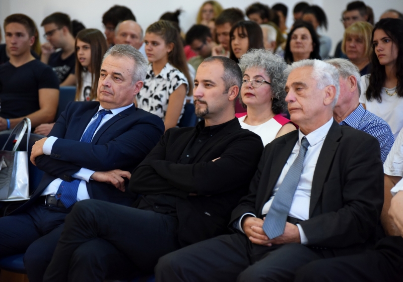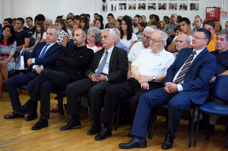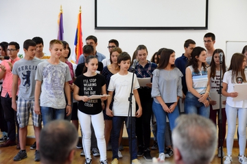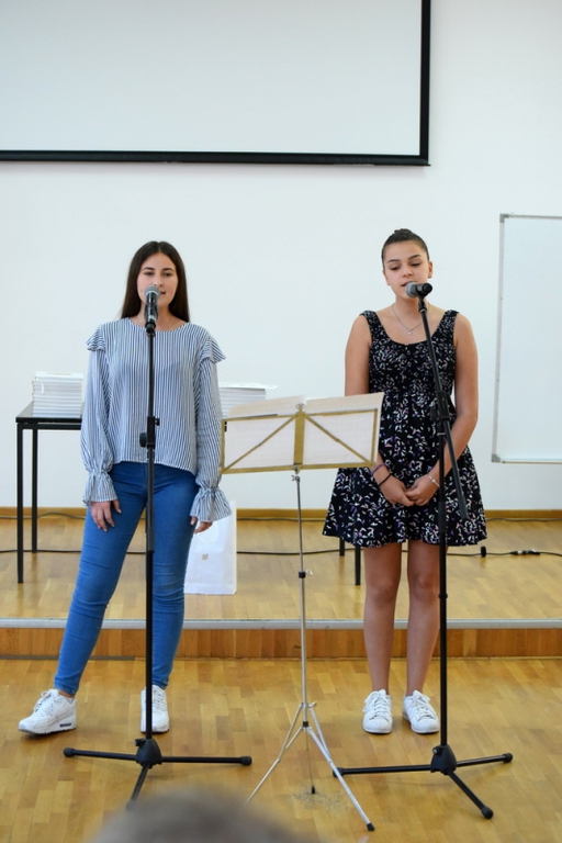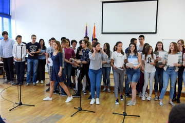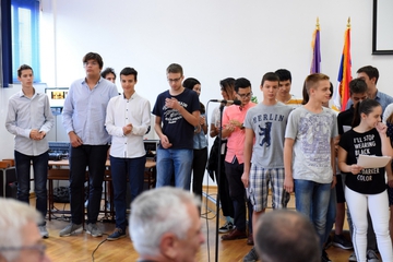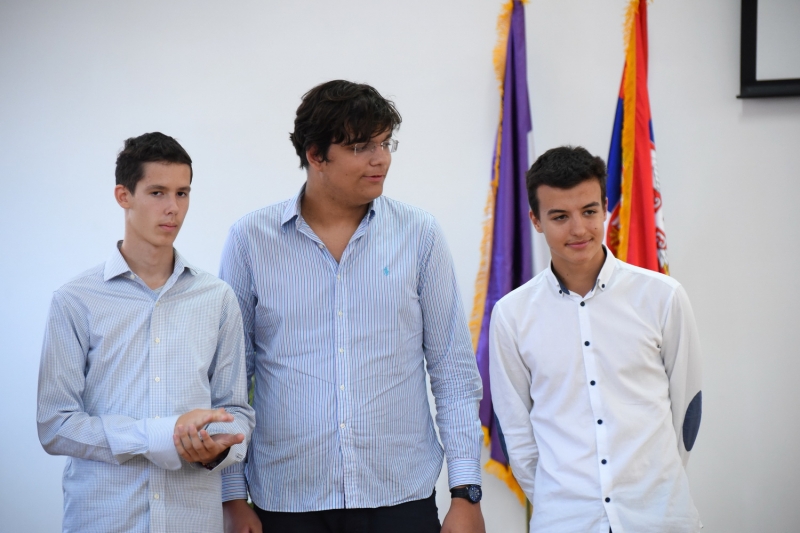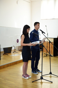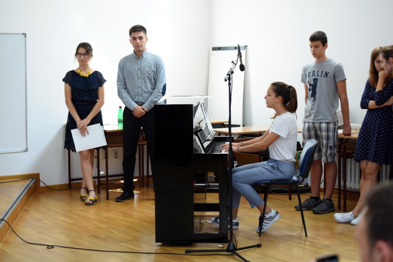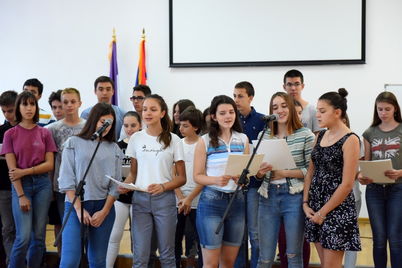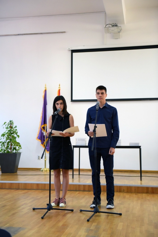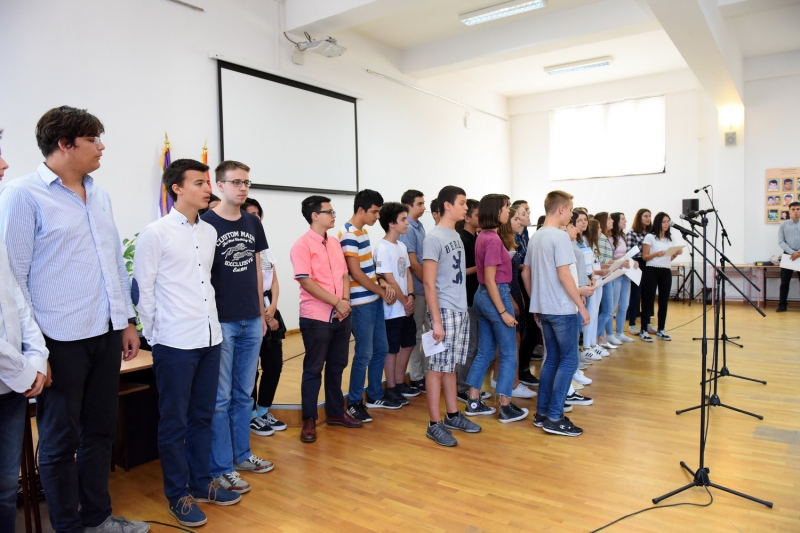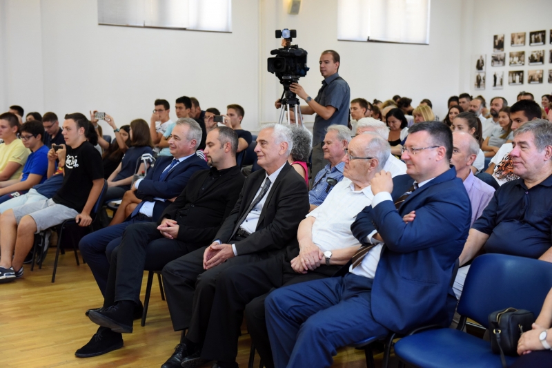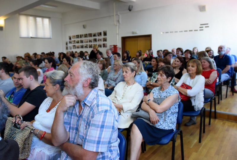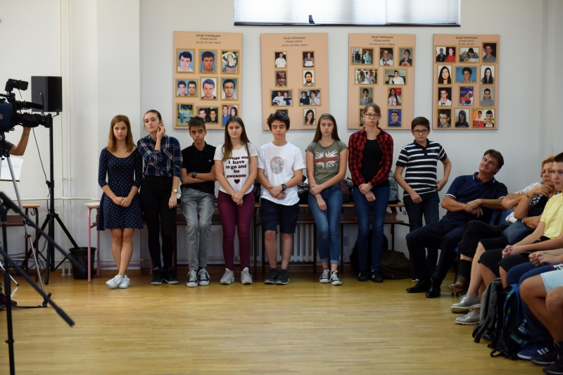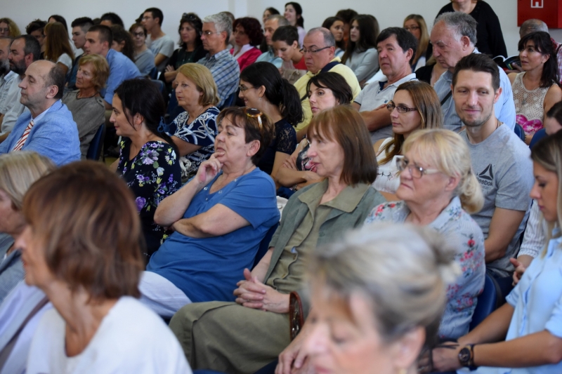ОпштеДОГАЂАЈИ-фотографијеУ среду, 19. септембра 2018. године ученици и колектив Математичке гимназије прославили су Дан школе у Свечаној сали. Присутне је поздравио директор Срђан Огњановић. И ове године су уручене захвалнице онима који помажу рад МГ и подижу њен углед. Захвалнице су уручене Зорану Станојевићу, новинару РТС-а за дугогодишњу и несебичну подршку у афирмацији Maтематичке гимназије, Лани Вукмировић, ученици трећег разреда за израду логоа Купа МГ и Маши Тиосављевић, ученици четвртог разреда за изузетан и пожртвован однос према Математичкој гимназији. Директор је нашим колегама Милану Чабаркапи и Зорану Николићу уручио поклоне поводом одласка у пензију. Након тога су им ученици отпевали омиљене песме. На крају, гости су поздравили ученике који су освојили медаље на међународним олимпијадама у школској 2017/2018. години. Свечану академију су припремили и извели наши ученици уз помоћ професорке Јелена Нововић.