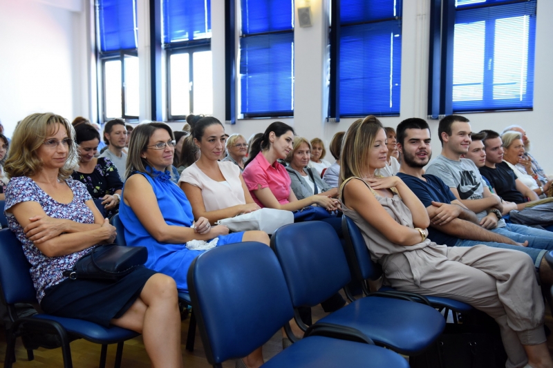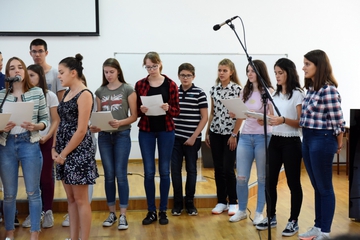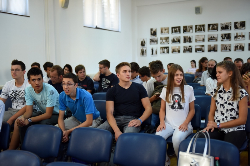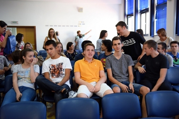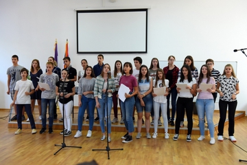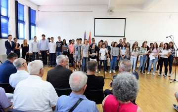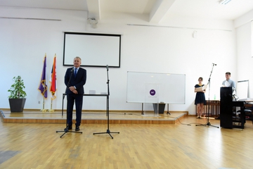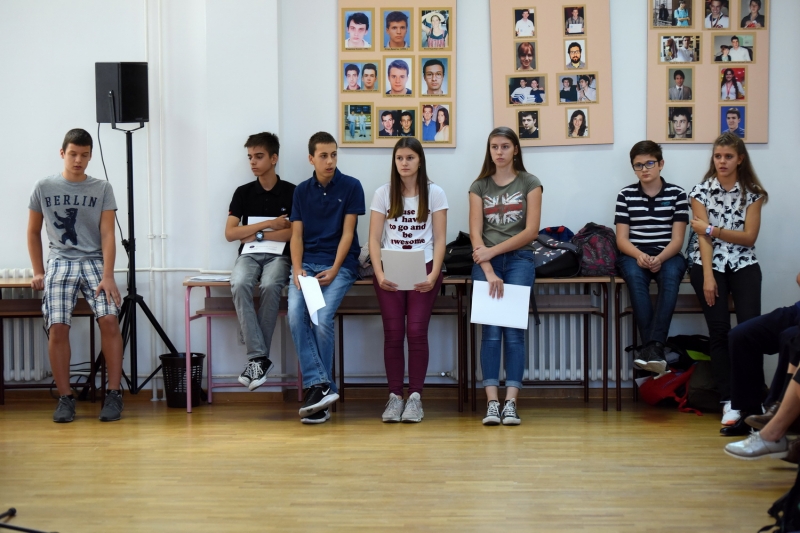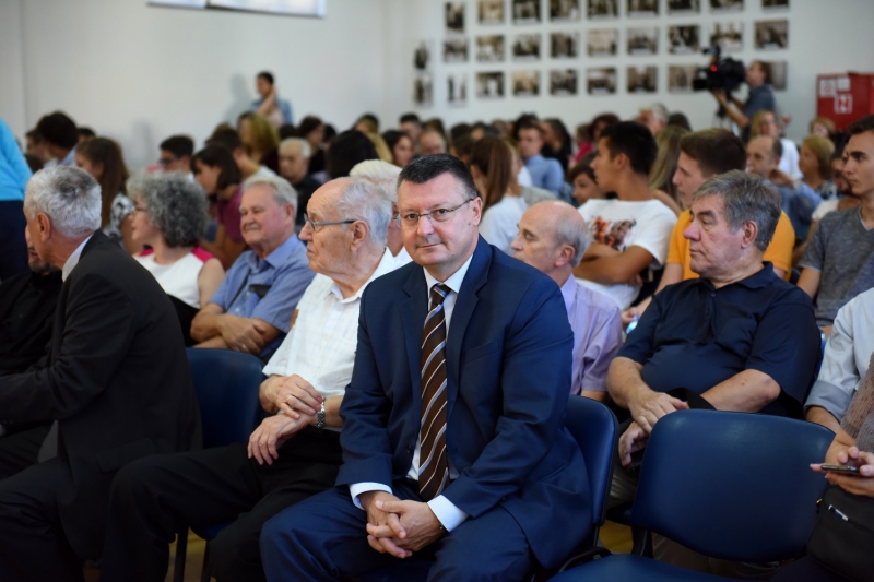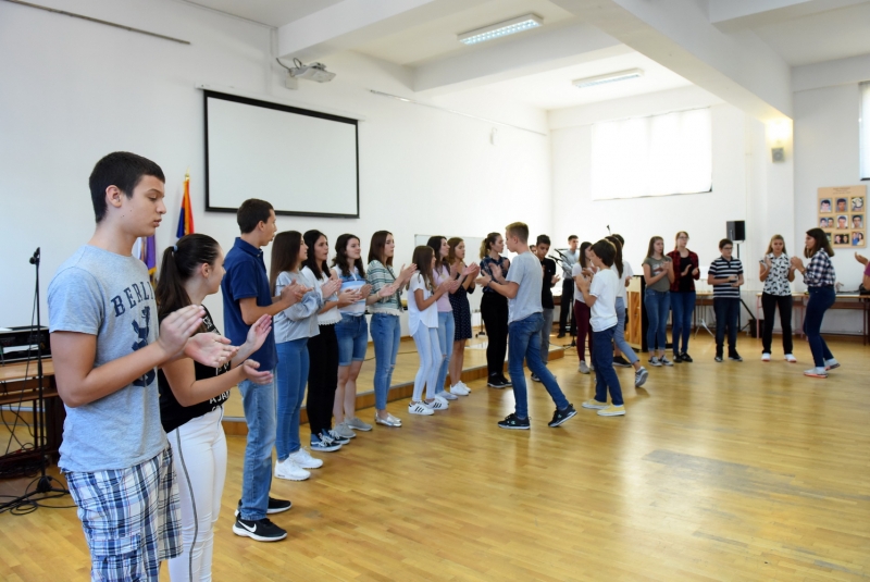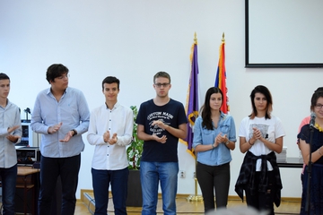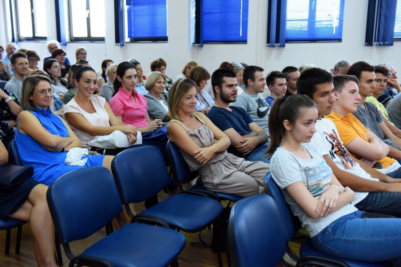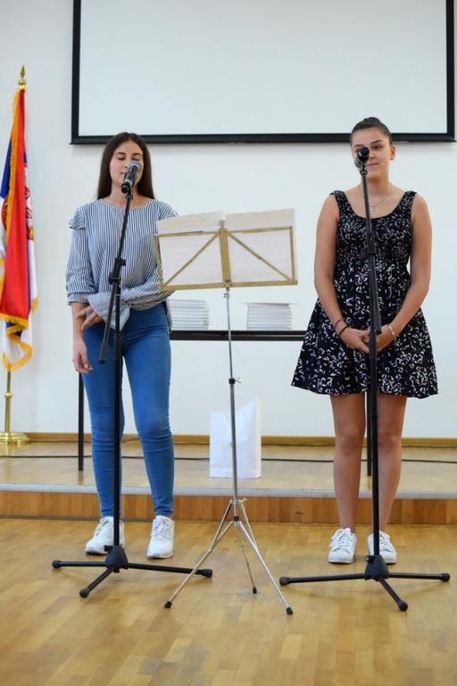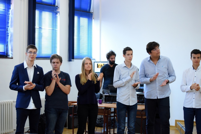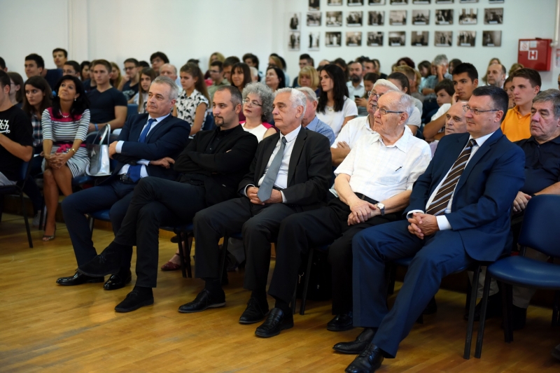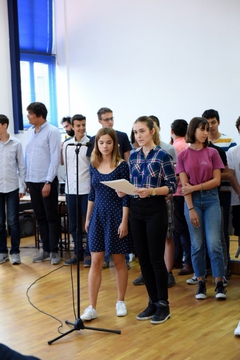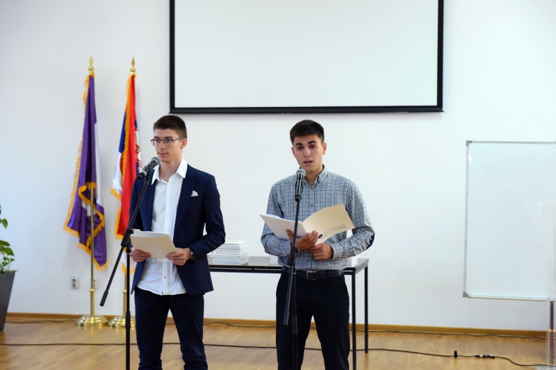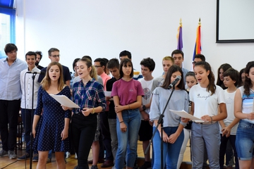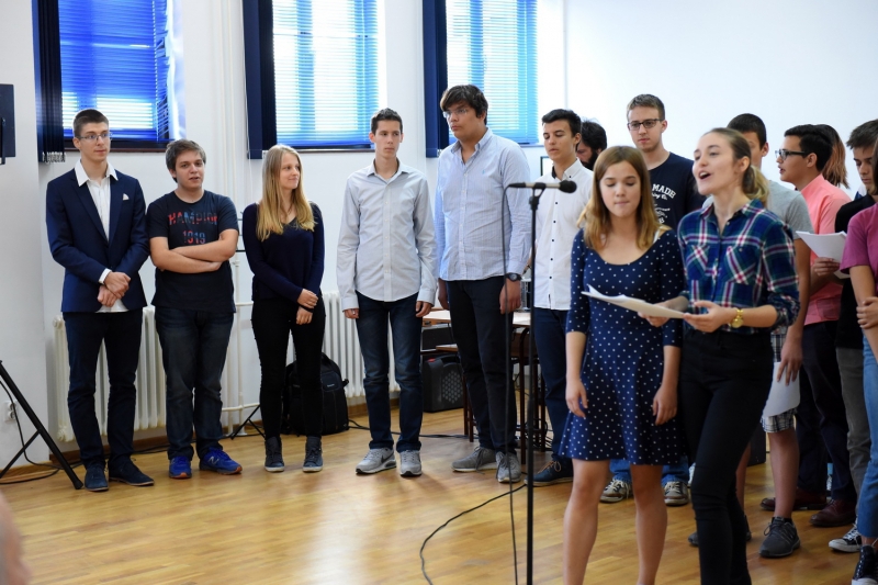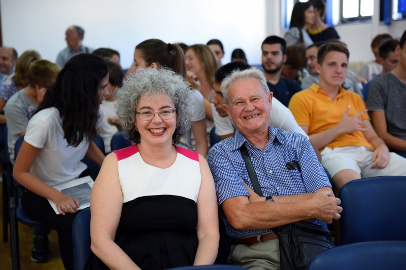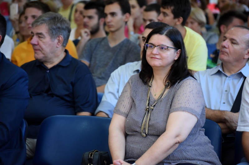 ОпштеДОГАЂАЈИ-фотографијеУ среду, 19. септембра 2018. године ученици и колектив Математичке гимназије прославили су Дан школе у Свечаној сали. Присутне је поздравио директор Срђан Огњановић. И ове године су уручене захвалнице онима који помажу рад МГ и подижу њен углед. Захвалнице су уручене Зорану Станојевићу, новинару РТС-а за дугогодишњу и несебичну подршку у афирмацији Maтематичке гимназије, Лани Вукмировић, ученици трећег разреда за израду логоа Купа МГ и Маши Тиосављевић, ученици четвртог разреда за изузетан и пожртвован однос према Математичкој гимназији. Директор је нашим колегама Милану Чабаркапи и Зорану Николићу уручио поклоне поводом одласка у пензију. Након тога су им ученици отпевали омиљене песме. На крају, гости су поздравили ученике који су освојили медаље на међународним олимпијадама у школској 2017/2018. години. Свечану академију су припремили и извели наши ученици уз помоћ професорке Јелена Нововић.