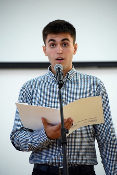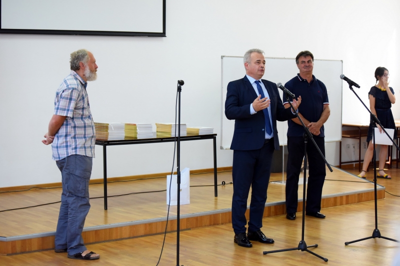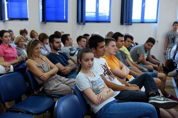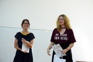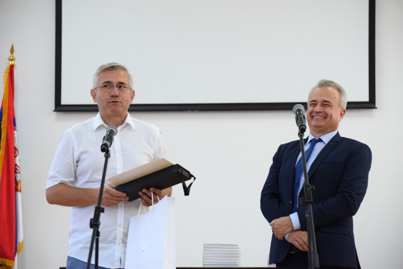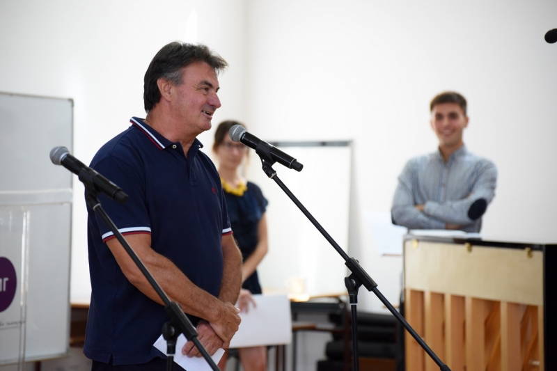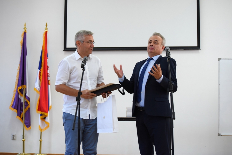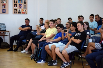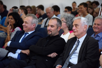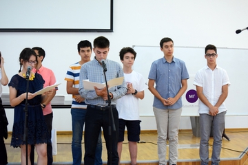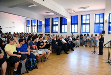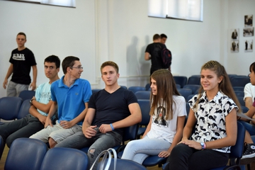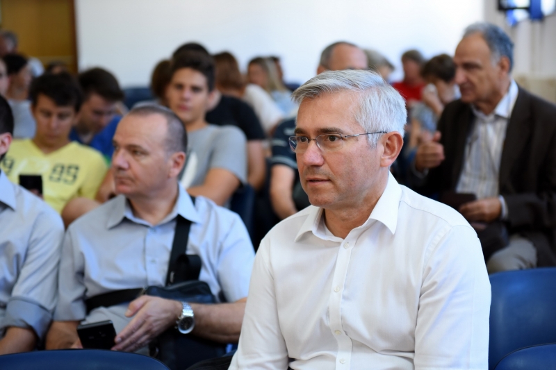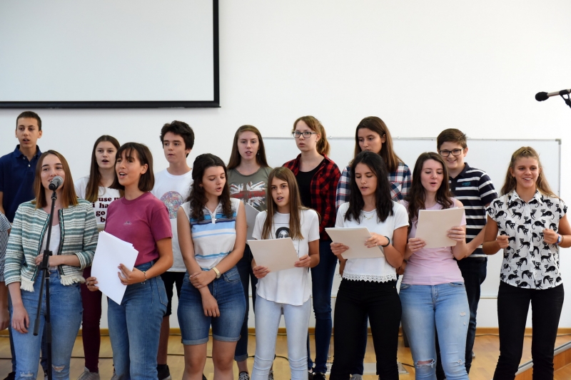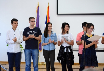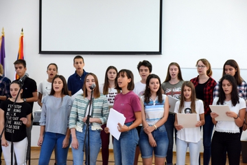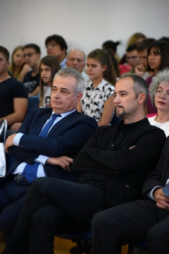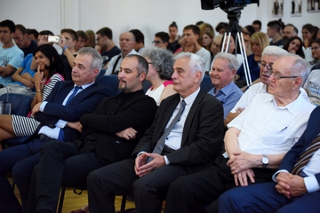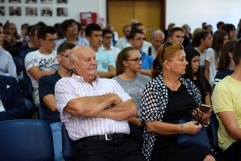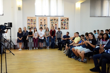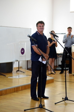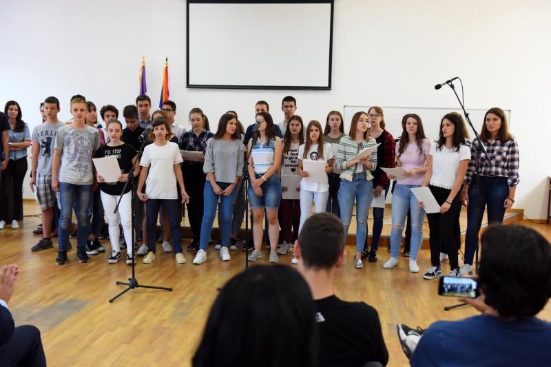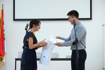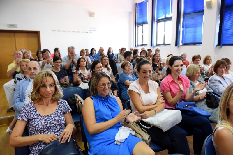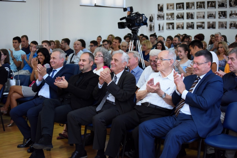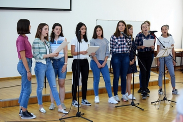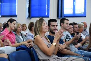 ОпштеДОГАЂАЈИ-фотографијеУ среду, 19. септембра 2018. године ученици и колектив Математичке гимназије прославили су Дан школе у Свечаној сали. Присутне је поздравио директор Срђан Огњановић. И ове године су уручене захвалнице онима који помажу рад МГ и подижу њен углед. Захвалнице су уручене Зорану Станојевићу, новинару РТС-а за дугогодишњу и несебичну подршку у афирмацији Maтематичке гимназије, Лани Вукмировић, ученици трећег разреда за израду логоа Купа МГ и Маши Тиосављевић, ученици четвртог разреда за изузетан и пожртвован однос према Математичкој гимназији. Директор је нашим колегама Милану Чабаркапи и Зорану Николићу уручио поклоне поводом одласка у пензију. Након тога су им ученици отпевали омиљене песме. На крају, гости су поздравили ученике који су освојили медаље на међународним олимпијадама у школској 2017/2018. години. Свечану академију су припремили и извели наши ученици уз помоћ професорке Јелена Нововић.