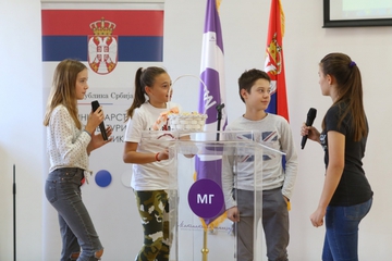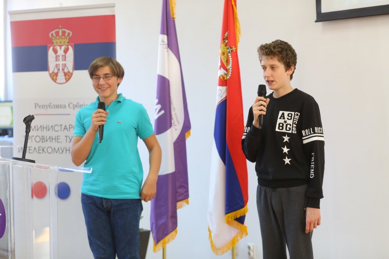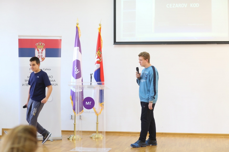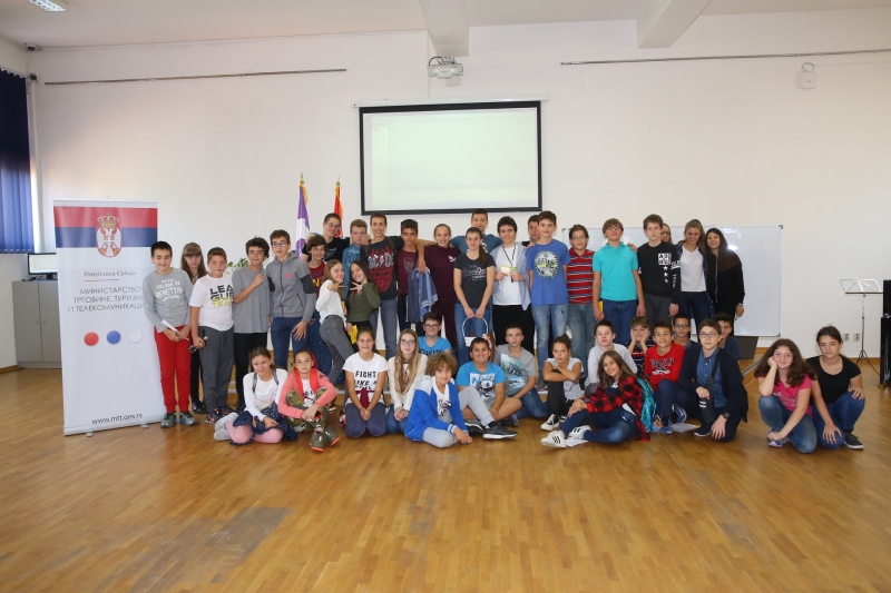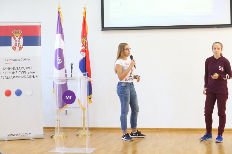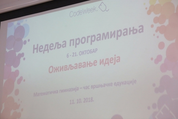 ОпштеДОГАЂАЈИ-фотографијеУ четвртак, 11. октобра 2018. године Министарство трговине, туризма и телекомуникација у сарадњи са Математичком гимназијом организовало је програм вршњачке едукације у оквиру којег су талентовани ученици нашег осмог разреда одржали презентације за ђаке шестог разреда из пет београдских основних школа. Присутнима се обратила госпођа Татјана Матић, државни секретар Министарства трговине, туризма и телекомуникација која је између осталог рекла: „Сви веома добро знате колико су дигиталне вештине важне и да ће оне бити неопходне како бисте били успешни у професијама будућности. У Математицкој гимназији се негују вредности које ми као ресорно министарство подржавамо. Ваше таленте ћемо наставити и даље да продржавамо, јер све ваше нове идеје које ћете оживети и таленти које ћете развијати помоћи ће у стварању једног лепшег и бољег света и лепше и боље државе у којој желимо да живимо“.
