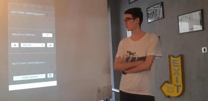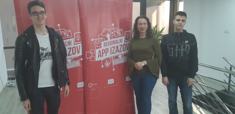 ОпштеМЕЂУНАРОДНА ТАКМИЧЕЊА-фотографијеНа такмичењу „Regionalni app izazov“ које је одржано у Подгорици 19. фебруара, учествовали су, као тим, Андреј Милисављевић и Стефан Радојичић са апликацијом која је добила награду на „mts:app“ конкурсу у којем Матаматичка гимназија учествује осми пут по реду. Конкурс за ученике у креирању апликације за мобилне уређаје „mts:app“ је одржан 23. јануара у организацији Телекома Србија, и том приликом је учествовало 13 тимова из Математичке гимназије у конкурнцији са тимовима из још пет пробраних гимназија које су специјализоване за рад са обдареним ученицима. Пет награђених тимова, међу којима је и Стефанов и Андрејев тим, су се пласирали на одлазак у Подгорицу на регионално финале. На такмичењу „Regionalni app izazov“ је укупно учествовало по пет тимова из Црне Горе, Босне и Херцеговиен и Србије. Конкуренција је била изузетно јака. Андреј и Стефан су креирали апликацију која ради шифровање података. У данашње време када постоји проблем са крађом података и безбедним преносом инфромација, креирана апликација даје решење да се поруке шифрују тако да нико осим онога ко шаље и онога ко прима поруку, не може да ту поруку разуме, па самим тим ни злоупотреби. Иако постоје већ апликације овог типа, оно што карактерише рад Стефана и Андреје је то што њихова апликација има и едукативни карактер и приближава корисницима појам шифровања података, различитих алгоритама из те области, као и значај чувања података.