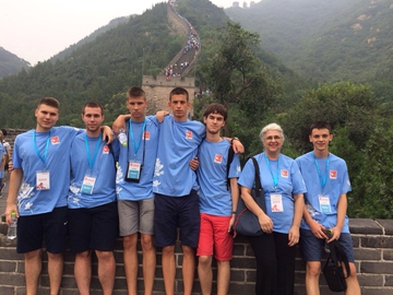 ДОГАЂАЈИ-фотографијеМеђународна сарадњаУченици Математичке гимназије Милоје Јоксимовић, Бранко Радовић, Филип Мастиловић, Урош Војиновић, Никола Антонијевић и Марко Мацура са проф. Јасминком Михаљинац били су учесници 2016 International Students Summer Camp-Beijing, од 14. до 23. јула у Пекингу. У кампу је било 600 ученика из разних земаља света и са многим смо остварили дивна пријатељства. Имали смо радионице везане за кинеску културу, кинеско писмо, кинеску оперу... учили смо да везујемо необичне чворове, садимо биљке, играмо...били смо на Великом кинеском зиду, Tian'anmen тргу, у Забрањеном граду, Храму неба, Музеју Пекинга, Олимпијском селу са Bird's Nest и Water Cube... За десет дана боравка успели смо доста да упознамо и стару и нову Кину. Колико нас је фасцинирала стара толико смо уживали у новој Кини.