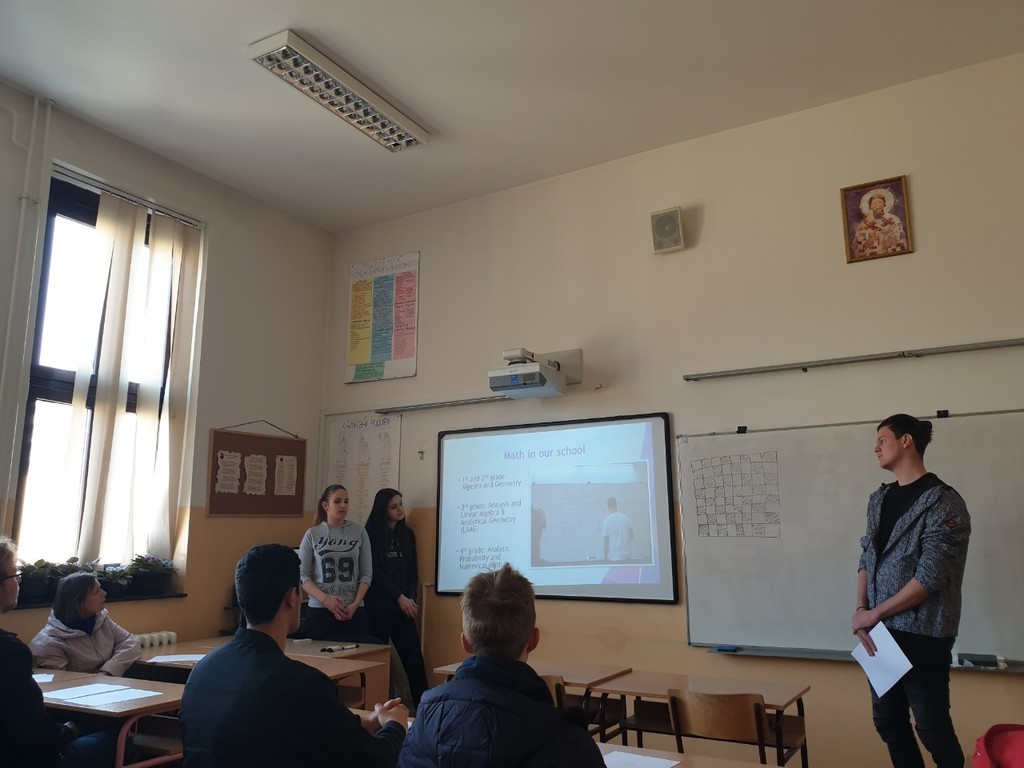 ОпштеДОГАЂАЈИ-фотографијеМеђународна сарадњаУ среду, 3. априла и четвртак, 4. априла гости наше гимназије су ученици и наставници гимназије Malme Borgarskola из Малмеа у Шведској. Ово је наставак дугогодишње успешне сарадње наших школа, а договорено је да се размена ученика настави и у будућности. Наши ученици упознали су своје госте са основним подацима о Србији и Београду, као и о Математичкој гимназији. Сусрет са гостима из Шведске организовале су професорке Мирјана Катић и Анђелка Петровић. За госте је кратак програм припремио и наш челиста Вук Оваскаинен.