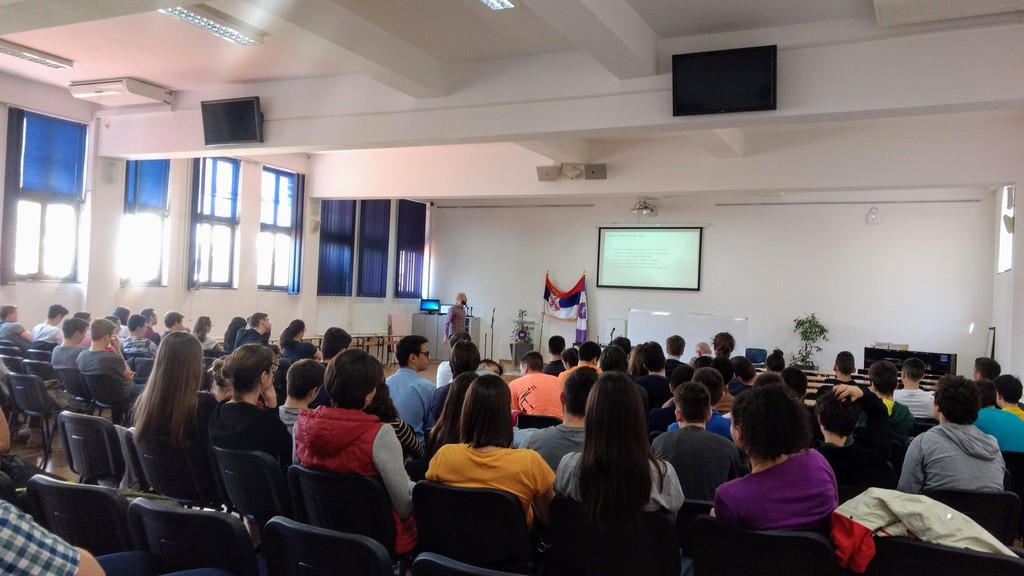 ОпштеСеминари и предавањаУ суботу, 30.3, и недељу, 31.3, у Математичкој гимназији, др Младен Николић са Математичког факултета, Универзитета у Београду, уз помоћ свог асистента, Немање Мићовића, је одржао курс машинског учења. У првом делу курса др Младен Николић је представио теоријске аспекте и основне методе машинског учења, као и њихову класификацију. Говорио је о линеарној и логистичкој регресији и осврнуо се на основне појмове вероватноће и статистике. У другом делу предавања, говорио је о неуронским мрежама (са пропагацијом унапред, конволутивним, рекурентним и генеративним супарничким мрежама). Поред теоријског дела, у другом делу предавања, Немања Мићовић, је приказао неколико практичних примера имплементираних у програмском језику Python, уз помоћ библиотеке Keras. Око седамдесет ученика је са великом пажњом испратило ово дводневно предавање и многи су активно учествовали у дискусији. Ово предавање је организовала професорка Милица Живановић.