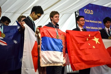 ОпштеМЕЂУНАРОДНА ТАКМИЧЕЊА-фотографије60. Међународна олимпијада из математике за ученике средњих школа одржала се од 14. до 22. јула у Великој Британији. Tим Србије сачињен од шест ученика Математичке гимназије у Београду постигао је изванредан успех. Ово је први пут да тим Србије освоји чак три златне медаље, једну сребрну и две бронзане. Медаље су освојили: