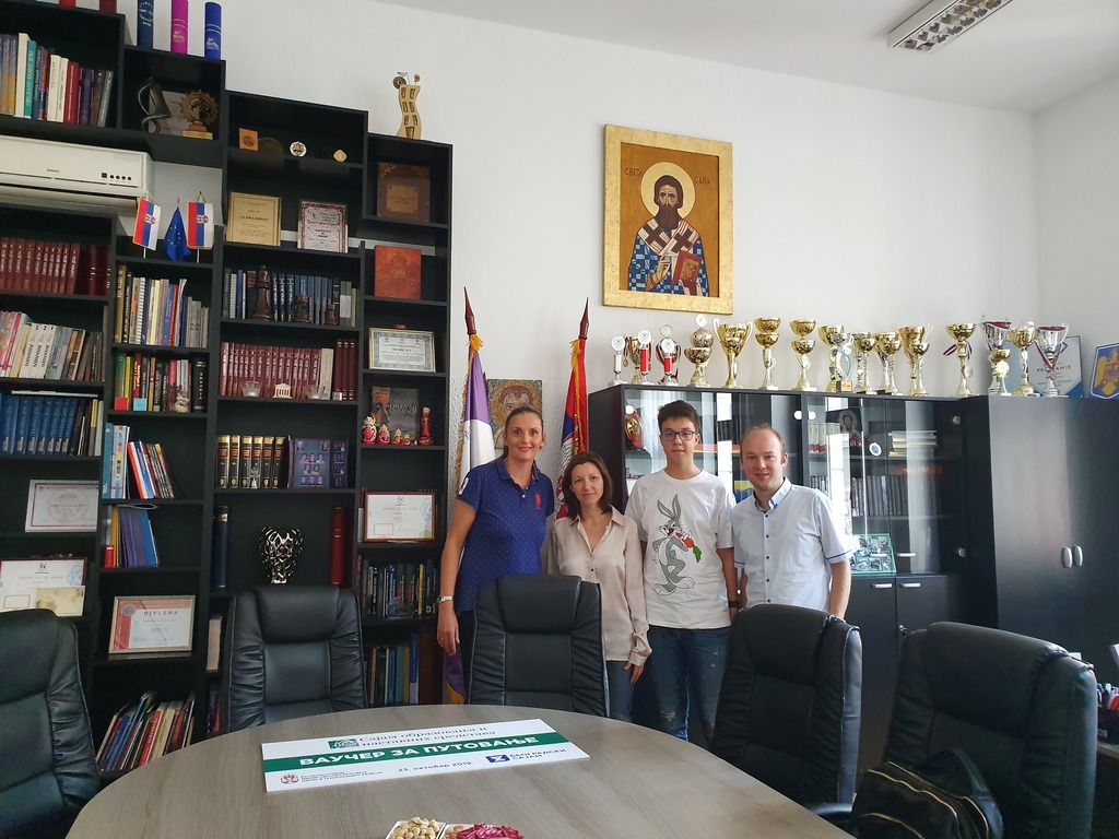 ОпштеМеђународна сарадњаУ петак, 25. октобра нашу школу је посетила успешна млада математичарка Јоана Клаудија Лазар са Универитета Политехника у Темишвару, Румунија. Она у нашем граду борави трећи пут као гост Математичког института САНУ и има дугодишњу сарадњу са нашим професором Ђорђем Баралићем. Проф. Лазар је била и предавач на Математичком кампу у САД који организује чувени професор Титу Андреску. У срдачном разговору су потврђене традиционално добре и јаке везе између румунских и српских математичара, а проф. Лазар је изразила жељу да лично продуби своју и подржи сарадњу школа из Клужа (града који је 2018 био домаћин Међународне математичке олимпијаде) и Темишвара са Математичком гимназијом.