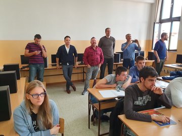 ОпштеМеђународна сарадњаУ четвртак, 10. октобра 2019. године Математичку гимназију је посетио водећи тим Мајкрософта из Сектора за образовање који ради на развоју алата за примену у образовању младих и који се користи у школама широм света. Нашу школу су посетили: Randy Wallingford, Mike Tholfsen, Paul Ray и William Fry (из САД-а) и наши бивши ученици који раде у Мајкрософтовом развојном центру у Београду: Томислав Радиц, Горан Радовановић и Мина Спасић. Они су нашим професорима и ученицима представили програм на којем раде. Разговарало се и о будућој сарадњи Мајкрософта и Математичке гимназије.