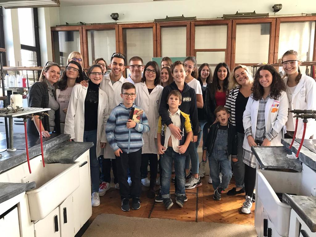 ОпштеДОГАЂАЈИ-фотографијеУ суботу, 12. октобра, неколико наших ученика је заједно са професорком Иваном Вуковић учествовало у промоцији науке на Хемијском факултету у сарадњи са Руским центром за образовање и науку. Ова манифестација је осмишљена поводом обележавања 150 година од открића Мендељејевог Периодног система елемената. Наши ученици су изводили демонстарционе огледе посетиоцима, који су поред уживања у истим имали прилику да посете и Музеј хемије уз стручно вођење. Захваљујемо се нашим ученицима за ваннаставно ангажовање.