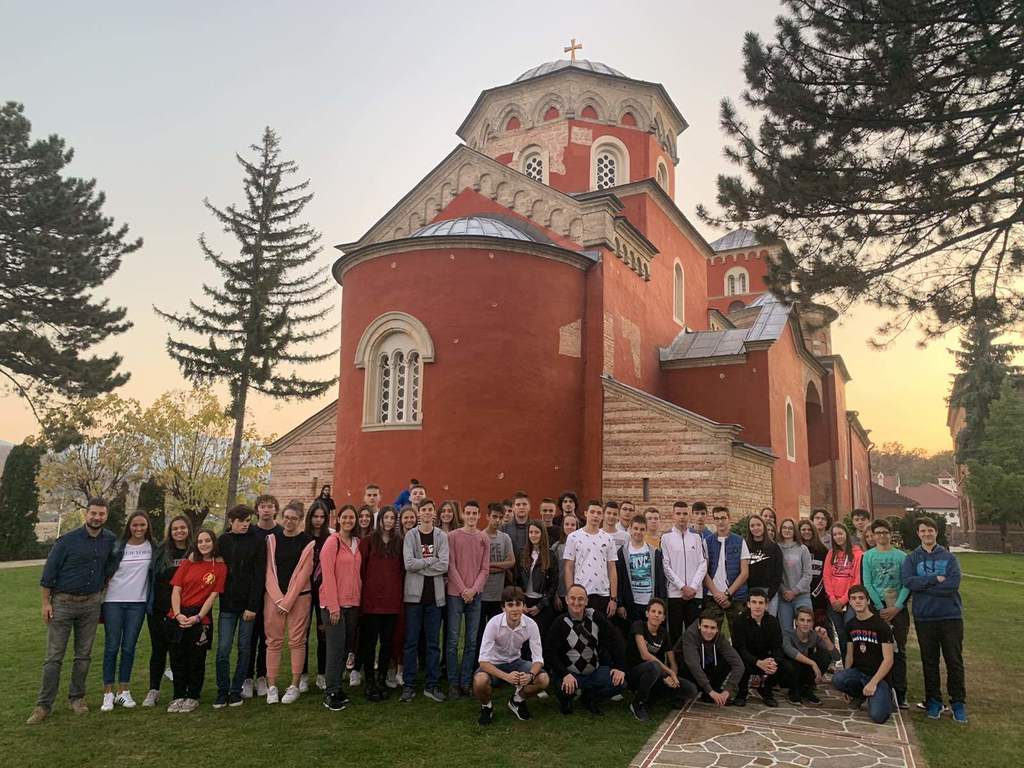 ОпштеДОГАЂАЈИ-фотографијеУ петак 25.10., на иницијативу вероучитиља Предрага Ђукнића, уз подршку колега из Стручног већа друштвених наука и разумевање Школске управе, уприличена је пригодна дводневна екскурзија за 75 поштовалаца светосавске традиције. Наиме, поводом обележавања 800. година аутокефалности СПЦ, у жељи да се подсетимо наших непролазних учитеља и светлих узора, посетили смо Рашку област. Обишли смо света места где смо као народ рођени- манастире Жичу, Студеницу, Сопоћане, Ђурђеве Ступове и Петрову цркву у Новом Пазару. За двоје наших сапутника и њихове кумове ово је ходочашће имало дубљи литургијски и егзистенцијални значај, јер је за њих организована Света тајна крштења по древном обреду. За све нас то је био додир са неуздрмљивим ослонцима свих будућих катарзи, обнова и препорода у најширем смислу. Излет је осмишљен тако да повеже бивше и садашње ученике, школу и друштво, знања и вредности, наше духовне темеље и научне аспирације. У реализацији ове идеје, коју је одобрила и подржала директорка Мирјана Катић, учествовали су наставници хуманистичке групе предмета, ђачки родитељи, настојатељи манастира и пријатељи МГ. У том смислу посебну захвалност дугујемо породици наше ученице Катарине Обрадовић из одељења IIе, која је учинила да се у Старом Расу осећамо као у свом завичају. Иако су мотиве овог саборног путовања одредили значајни јубилеји и потребе верске наставе, оно је у својим исходима добило шири културни значај. Упознали смо боље православно хришћанство, нашу земљу, њене различитости, историјске и правне основе државности, архитектуралне и уметничке стилове и свакако једни друге. Управо ово људско отварање, спремност да се кроз учење и размену обогаћујемо и у врлини узрастамо чини препознатљиви стил МГ.