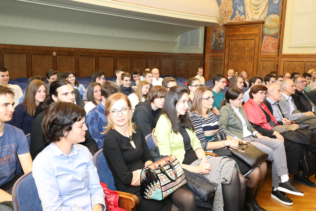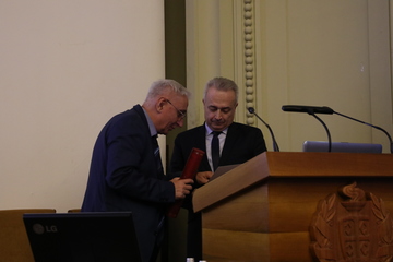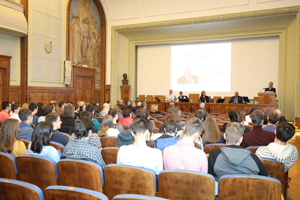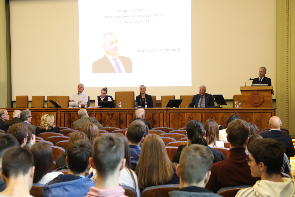 ОпштеНАГРАДЕ И ПРИЗНАЊА-фотографијеУ четвртак, 31. 10. 2019. године у 13:15 часова у Свечаној сали САНУ уручена је Повеља Математичког института САНУ дугогодишњем директору Математичке гимназије, мр Срђану Огњановићу. Управни одбор Математичког института САНУ је на седници од 30. 8. 2019. године донео одлуку да се мр Срђану Огњановићу додели највише признање Института за изванредан вишедеценијски педагошки рад у области математике и допринос развоја Математичке гимназије.