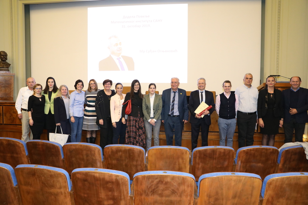 Срђану Огњановићу уручена Повеља Математичког института САНУ