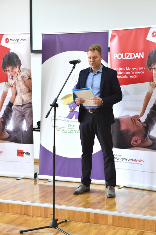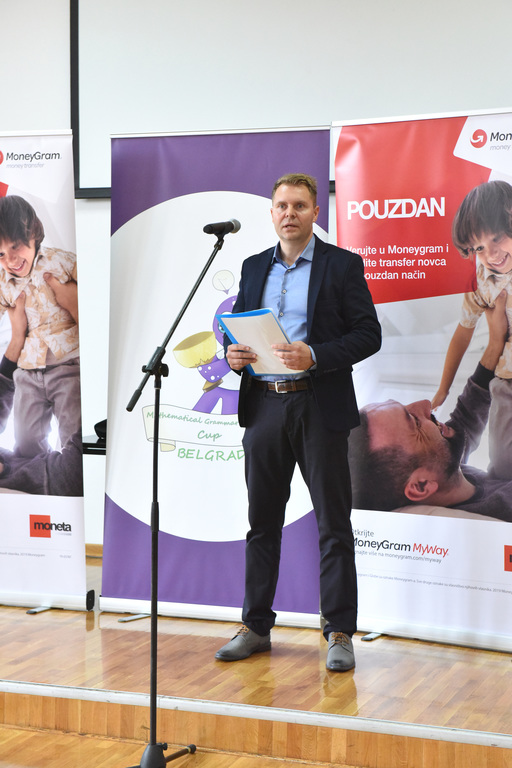Такмичарима и њиховим наставницима желимо пуно успеха.“ Куп Математичке гимназије отворио је господин Дејан Јовљевић, заменик директора Moneta Financial Services doo Београд који је свим такмичарима пожелео, пре свега, добро здравље, а онда и успех на такмичењима.