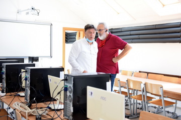 ОпштеДОГАЂАЈИ-фотографијеУ четвртак, 20. августа 2020. године Мирјана Катић, директор Математичке гимназије и Александар Кавчић, оснивач Фондације "Алек Кавчић" уручили су по пет рачунара ОШ "Милован Глишић" у Ваљеву и тиме је завршена овогодишња акција донирања рачунара основним школама у Србији. Овом приликом посетили су и Ваљевску гимназију.